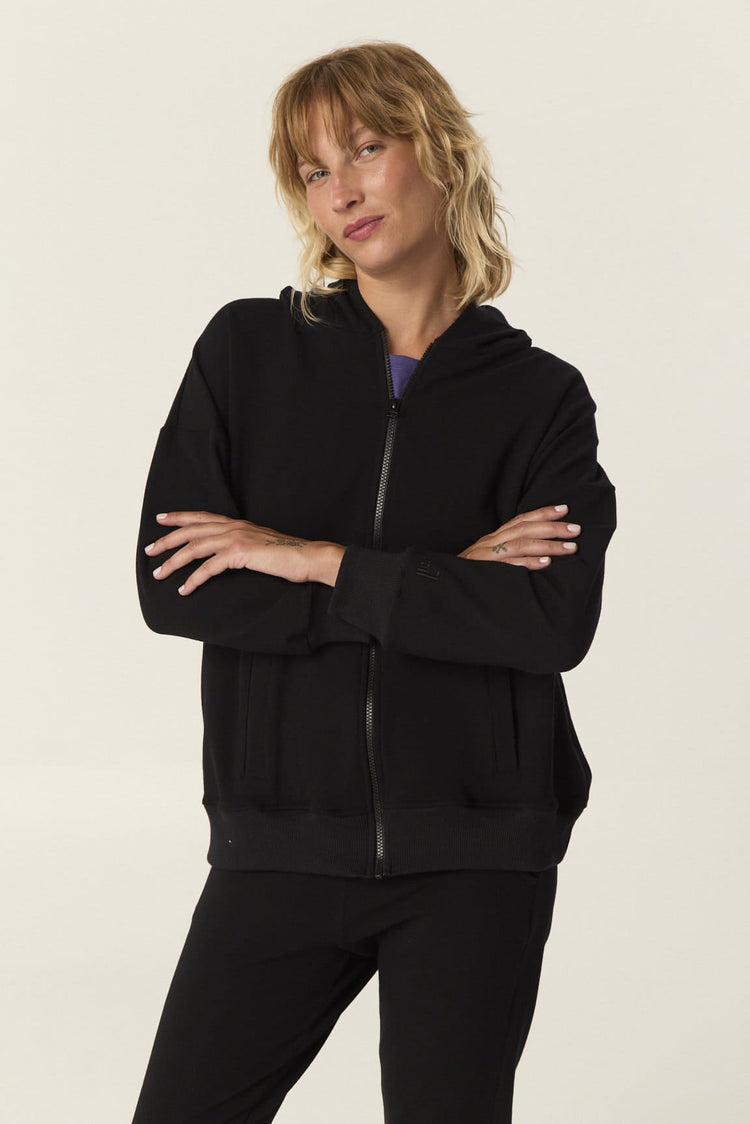 Campera deportiva de Rustico con capucha doble, acceso con cierre delantero y bolsillo ojal. Posee imagen de marca bordada en manga.