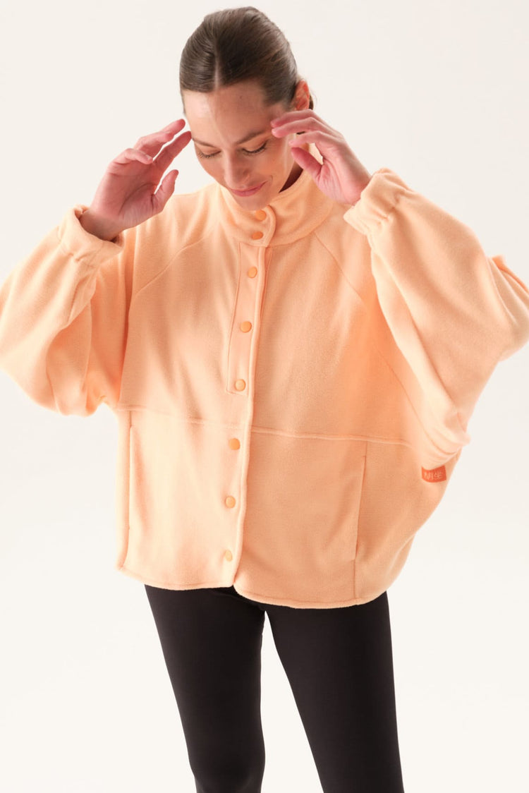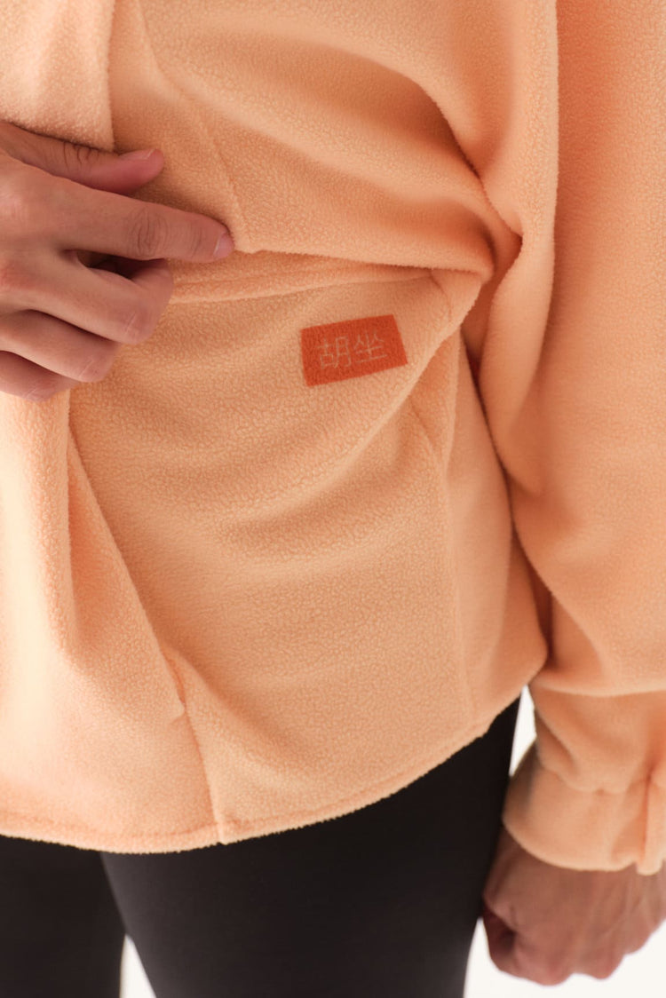 Campera deportiva de micropolar con broches presión, bolsillos y estampa japonesa: Sukhasana en Japón significa placer, bienestar y equilibrio interno. Sukha es el estado de verdadera y plena felicidad.