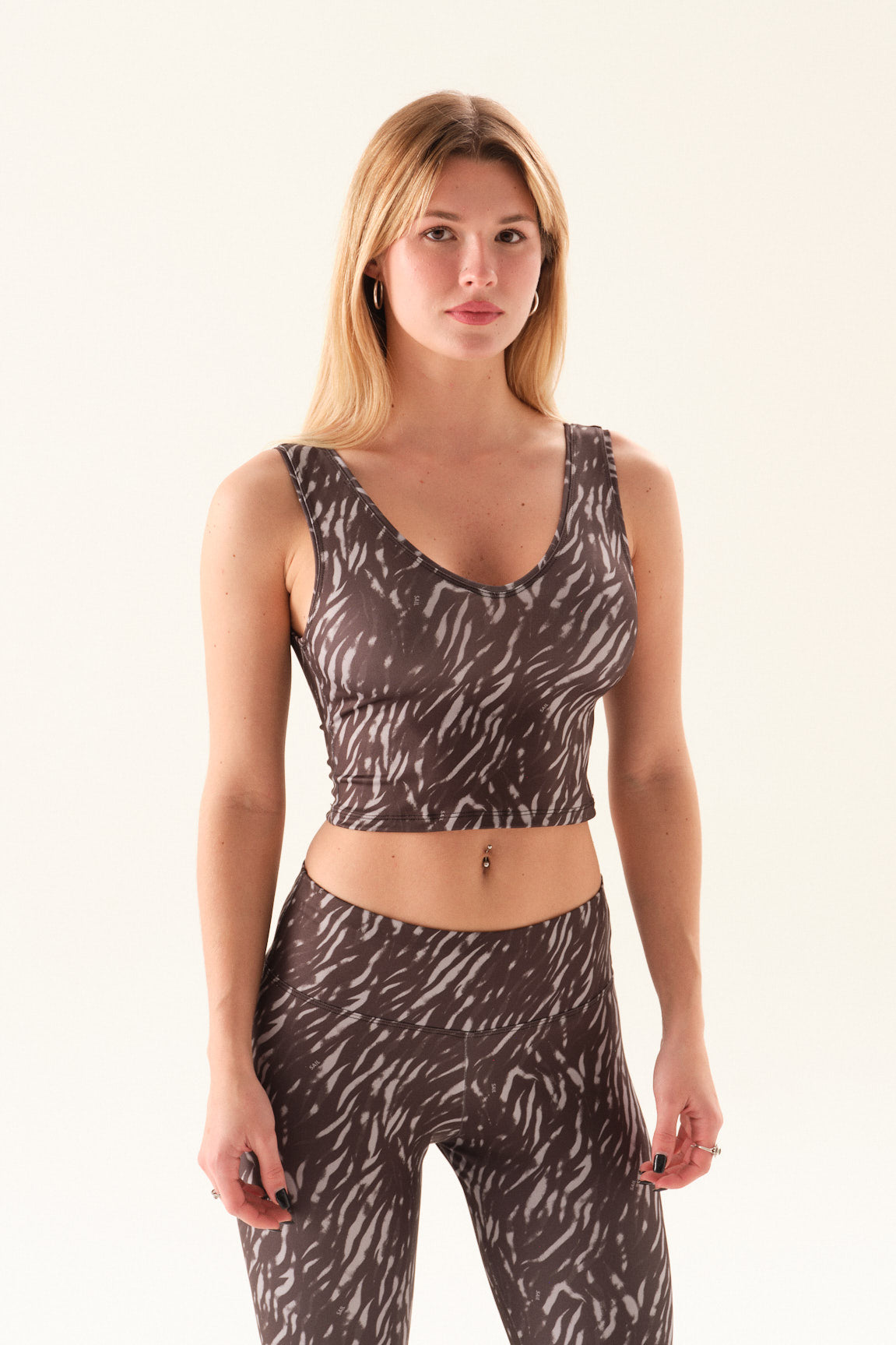Top deportivo de saplex estampado con escote redondo.