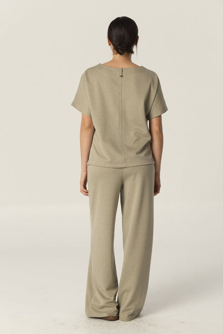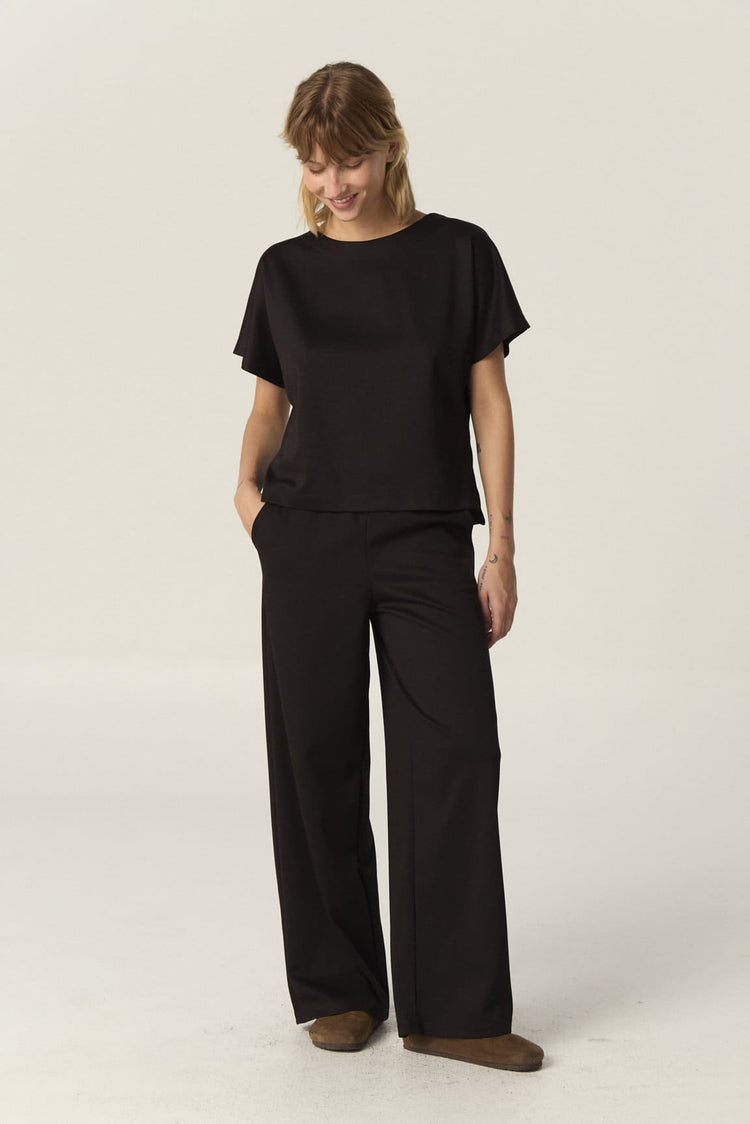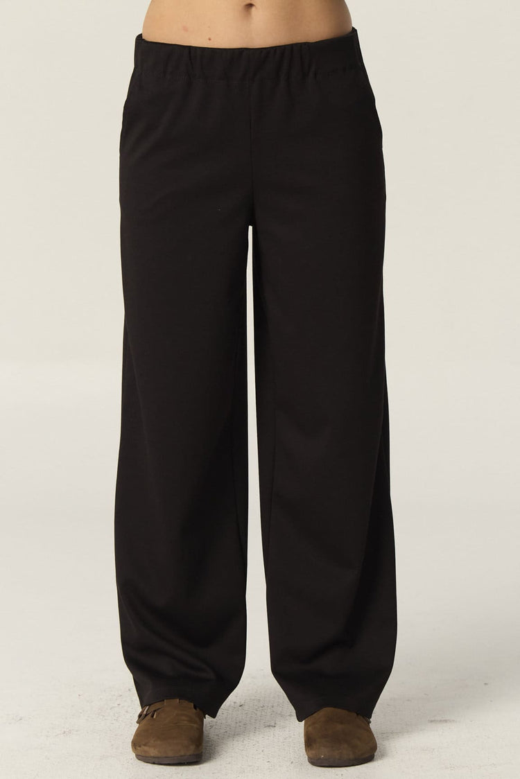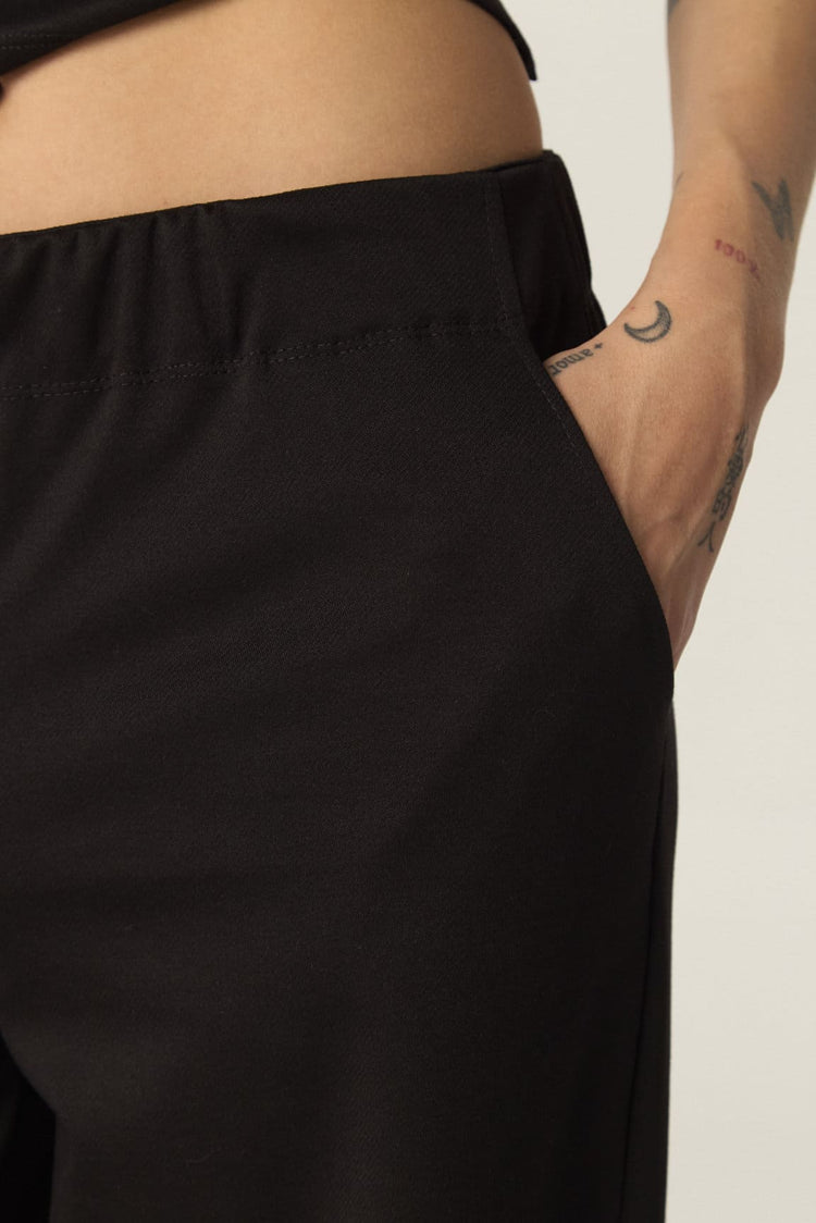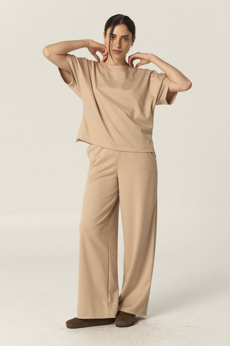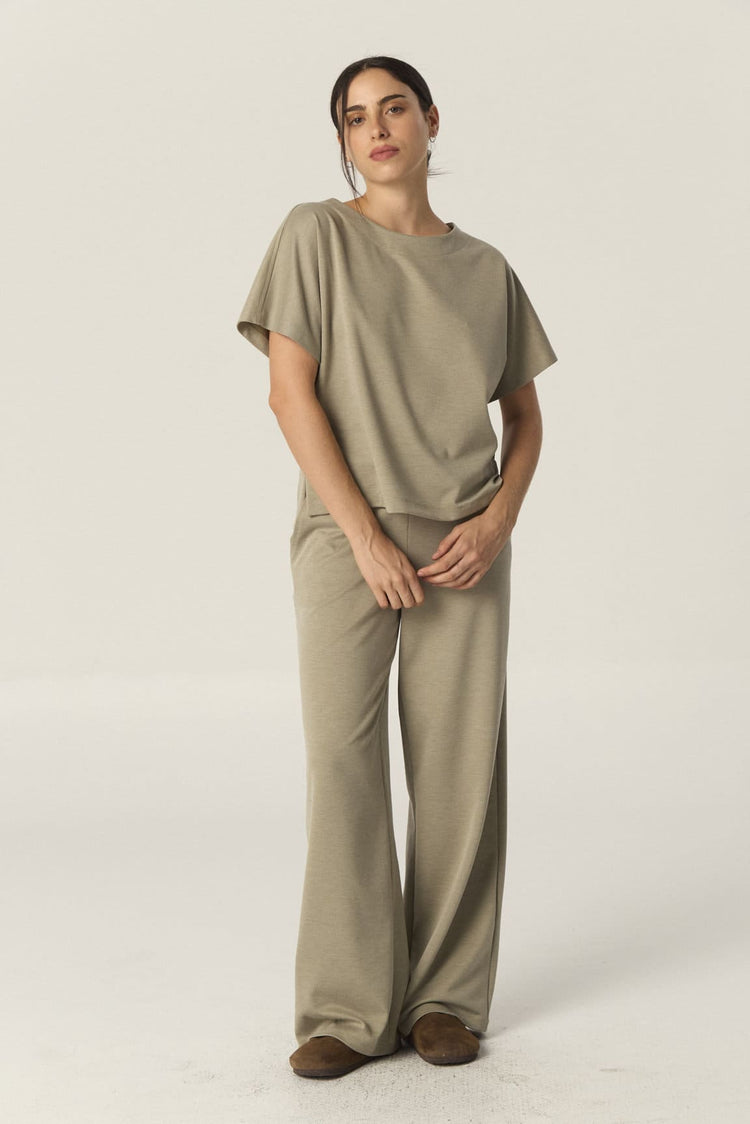 Confeccionado en sarga de punto, este pantalón de corte wide leg ofrece un calce holgado y cómodo. Su cintura con elástico se ajusta con facilidad, brindando mayor confort. Puede combinarse con la Remera Muriel para lograr el set completo.
