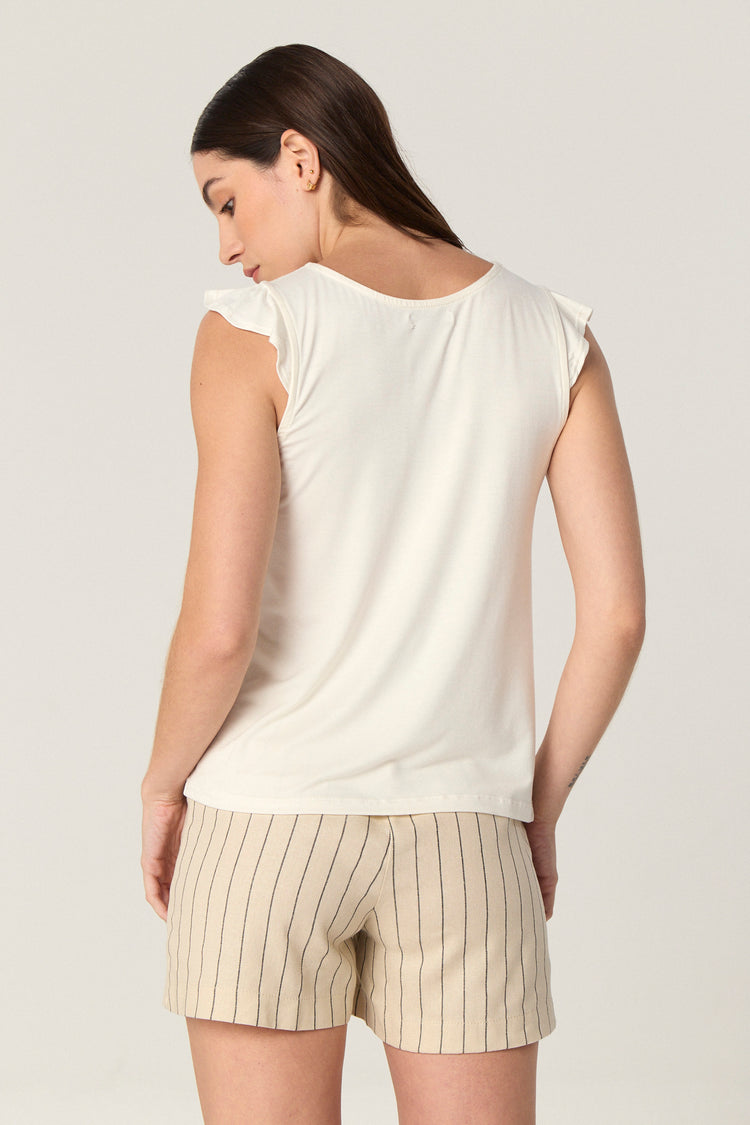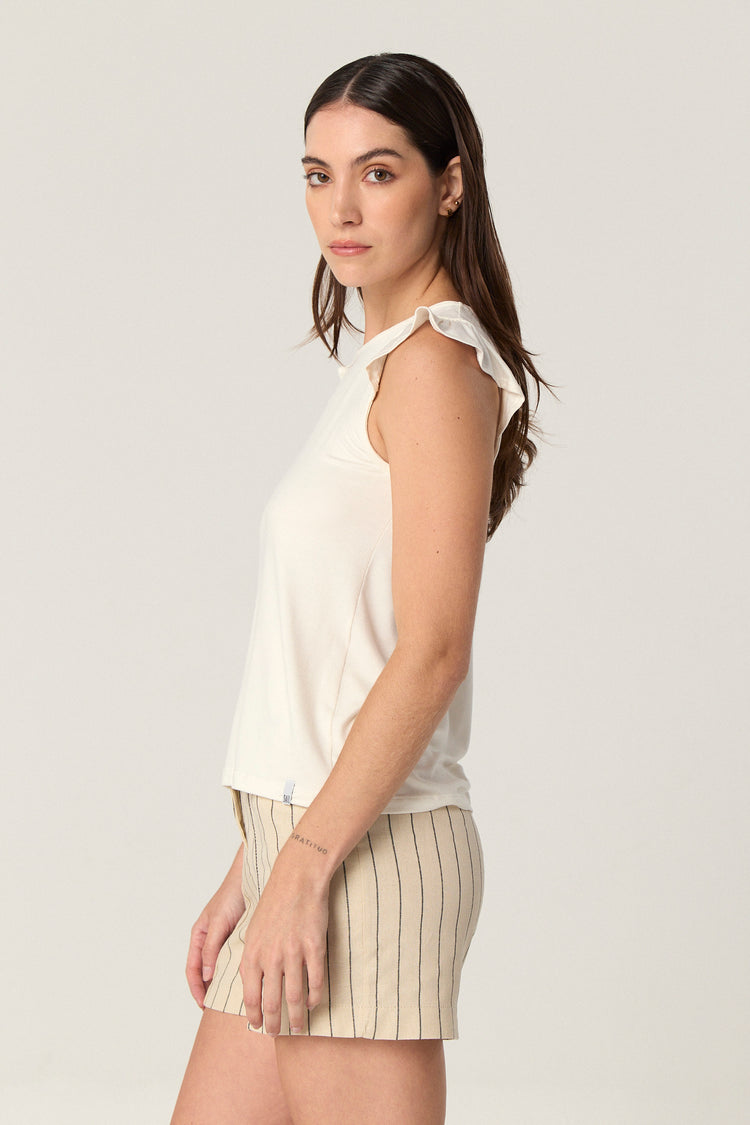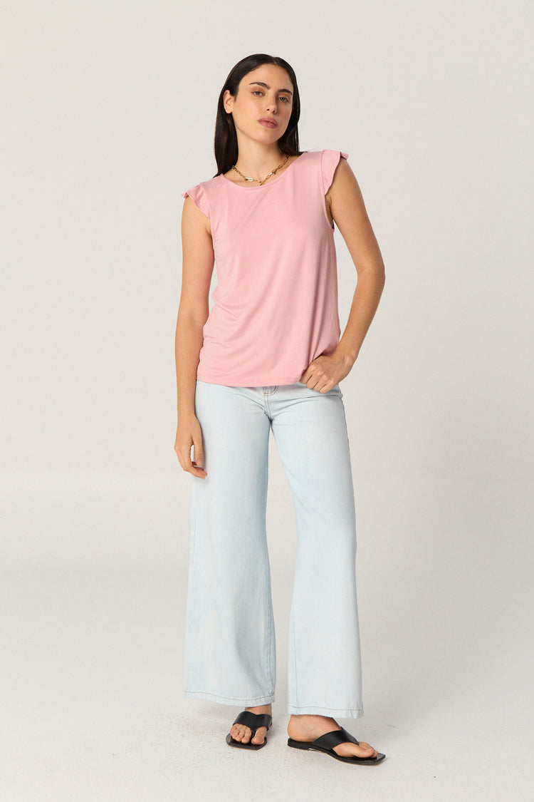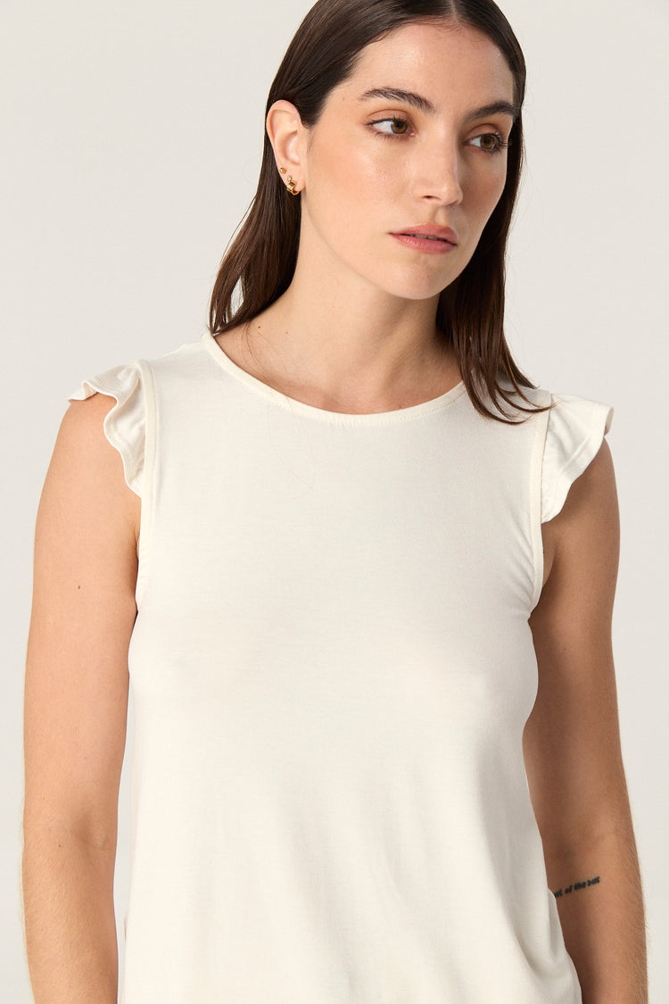 Remera de modal con escote redondo y mangas con volados.