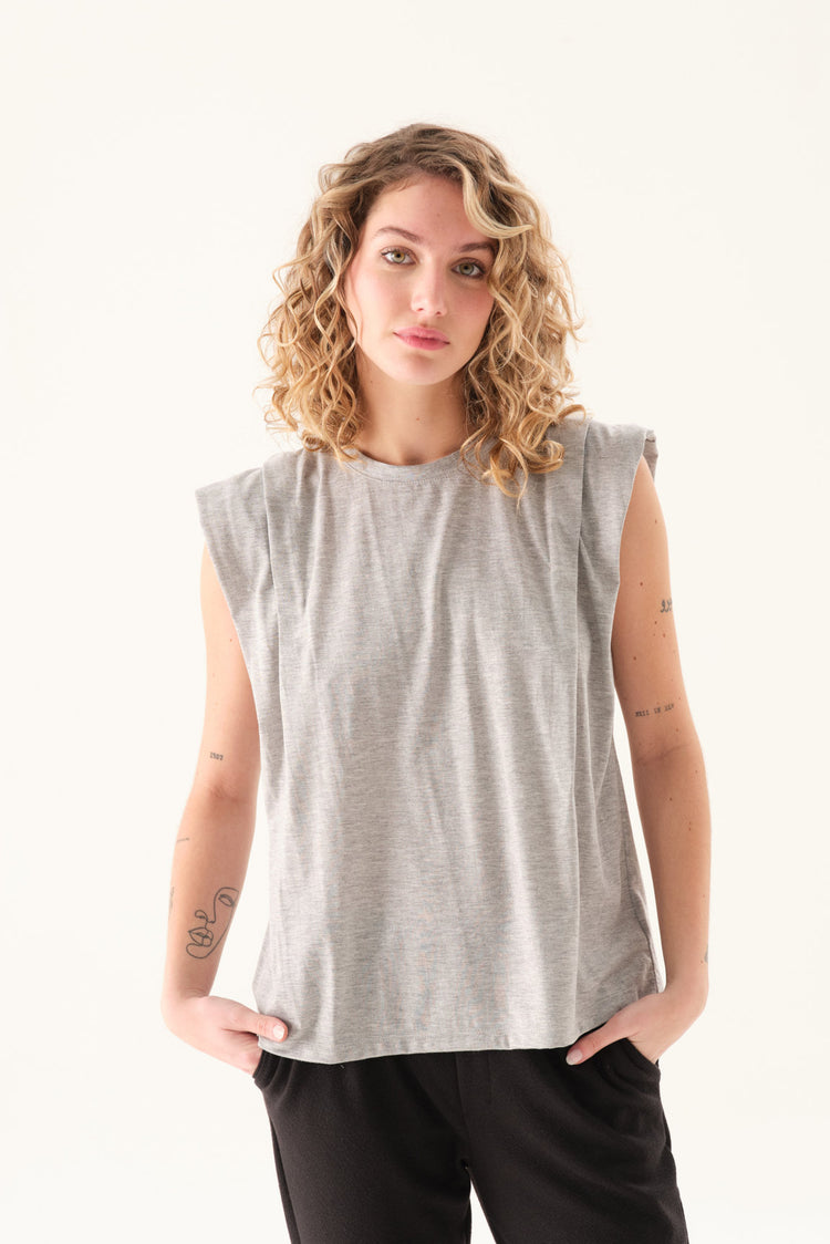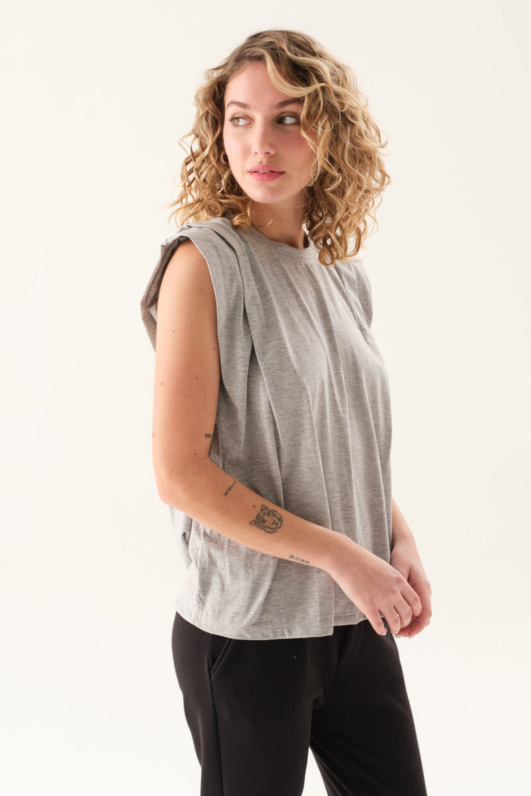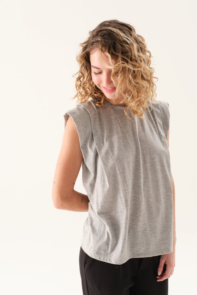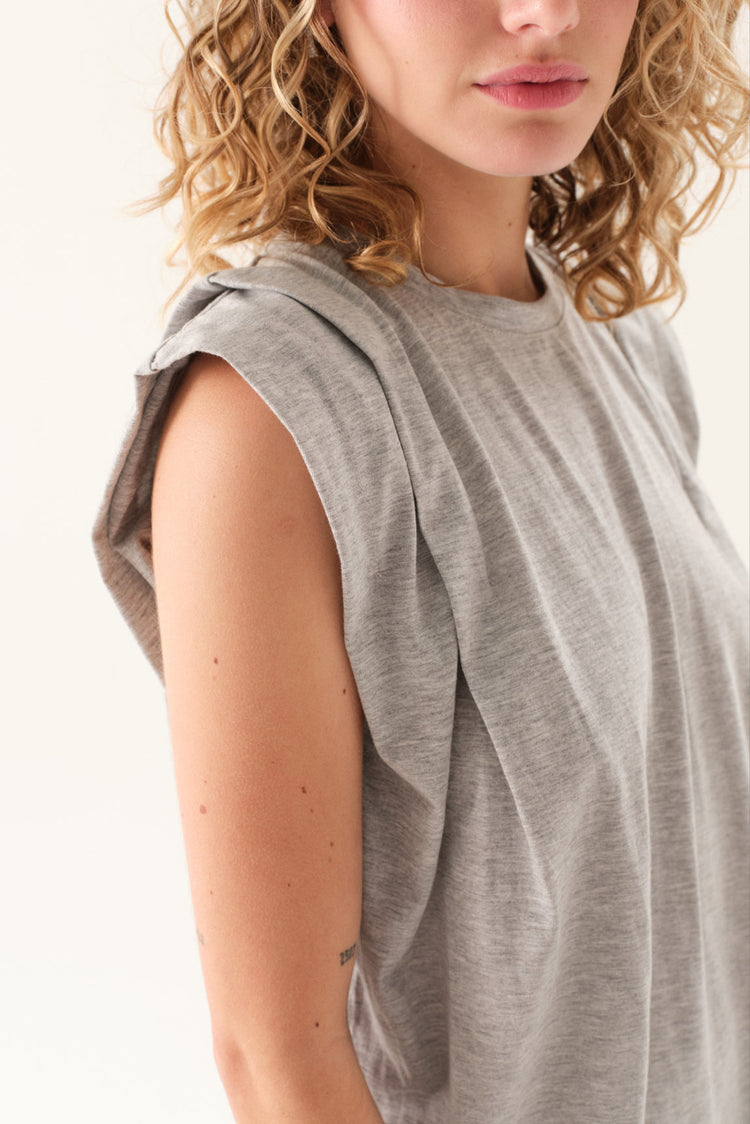 Remerón de jersey con escote redondo, mangas caídas y tabla en hombros.