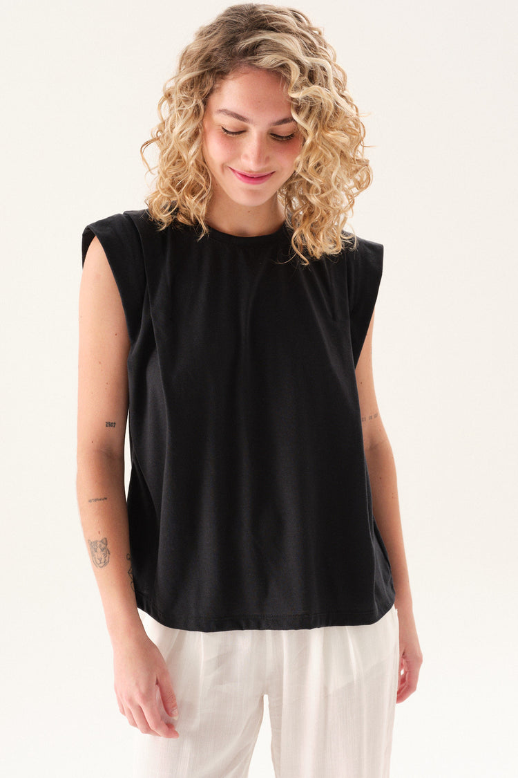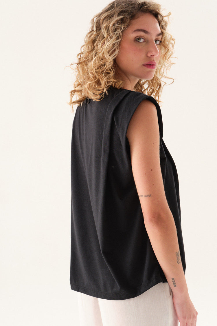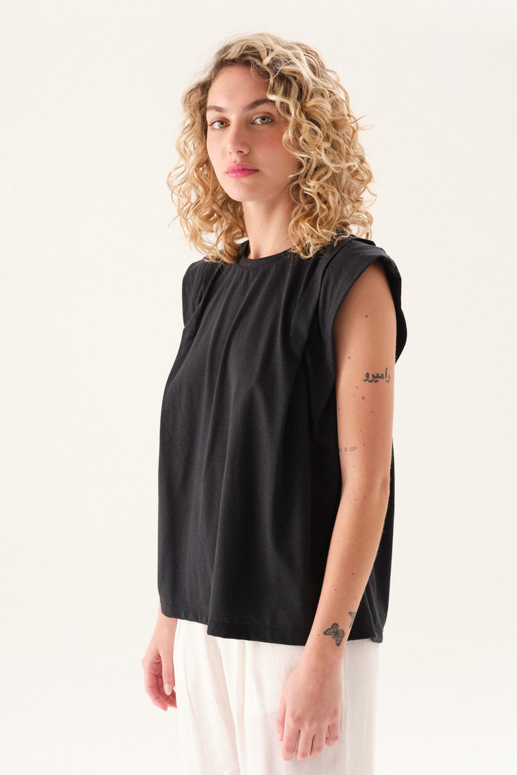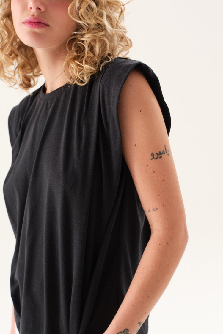 Remerón de jersey con escote redondo, mangas caídas y tabla en hombros.