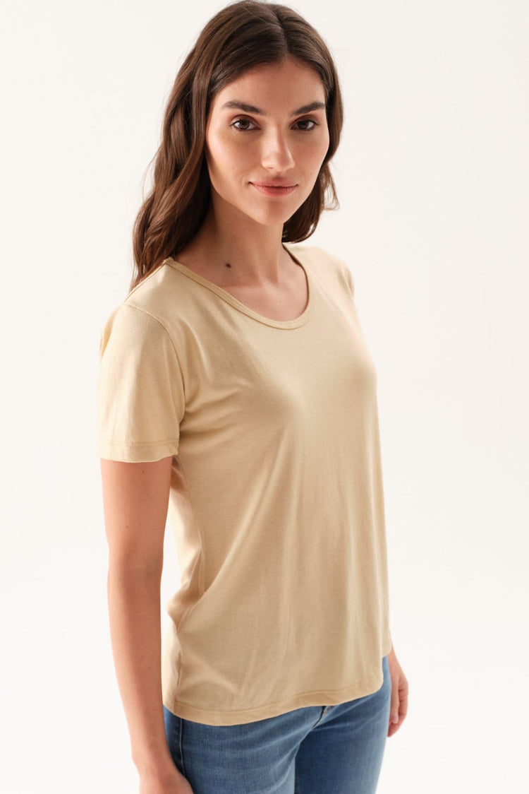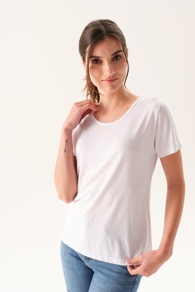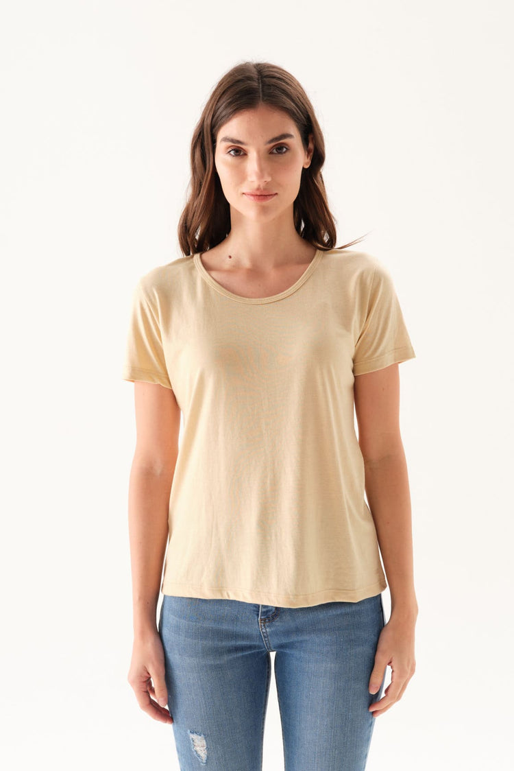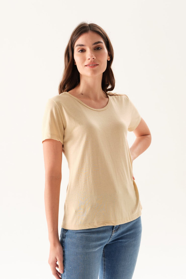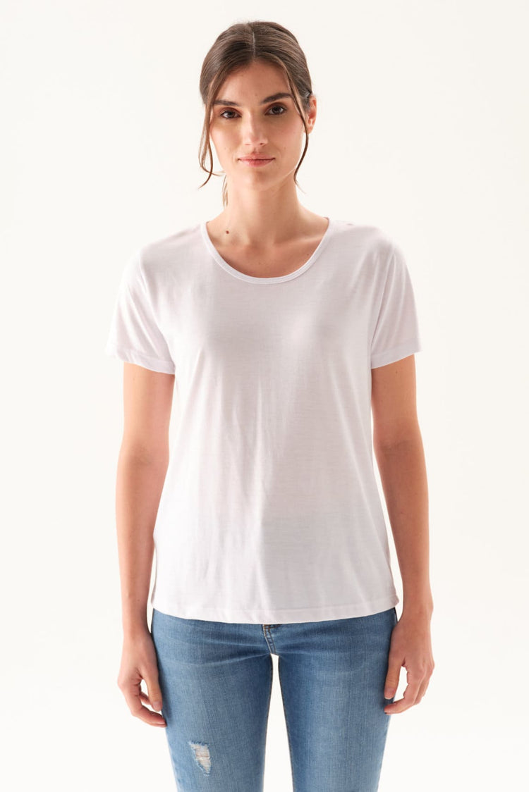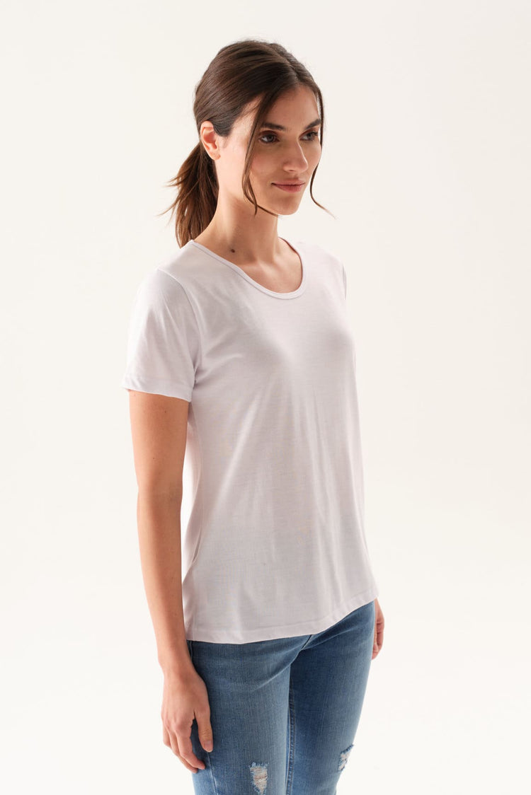 Remera manga corta con escote en collareta y bordado en lateral inferior.