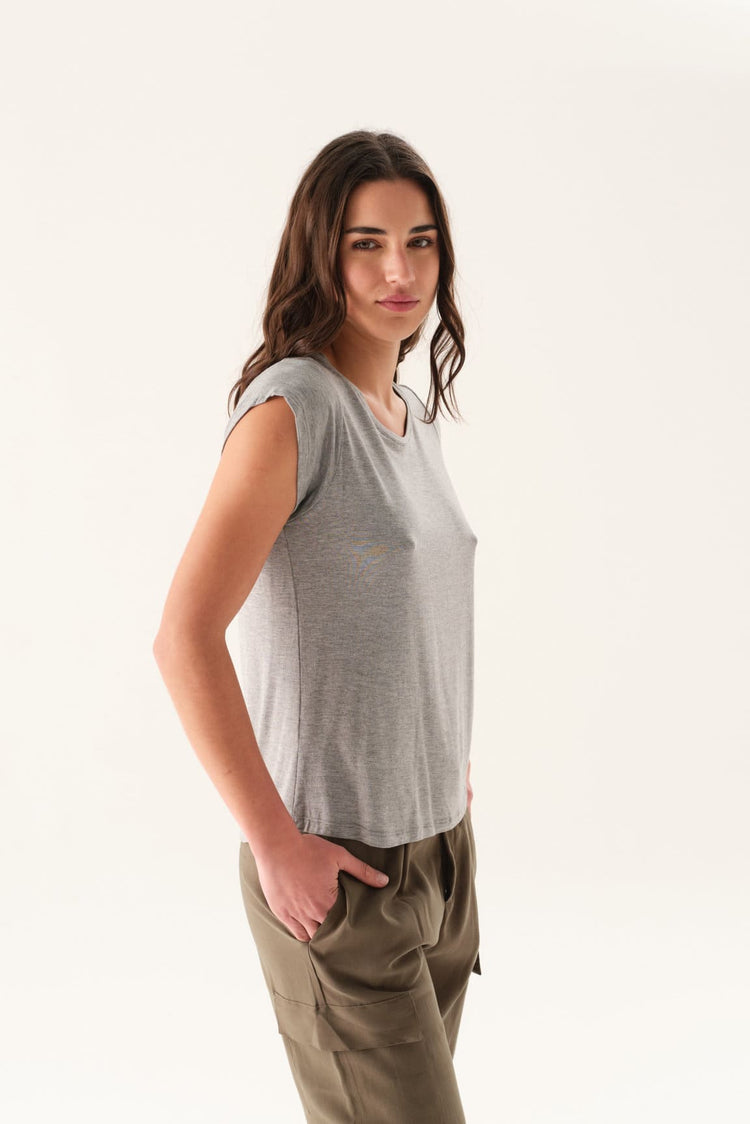 Referencia variante Gris Medio: La modelo mide 1,75m y está usando talle S.
