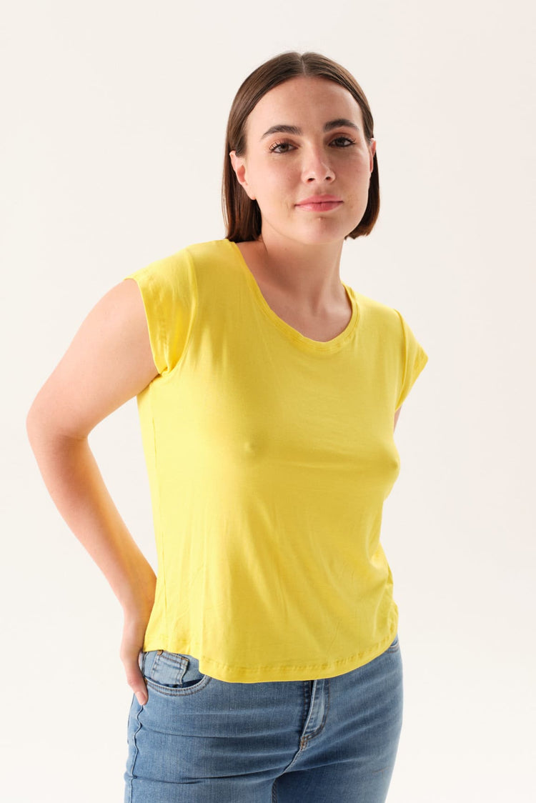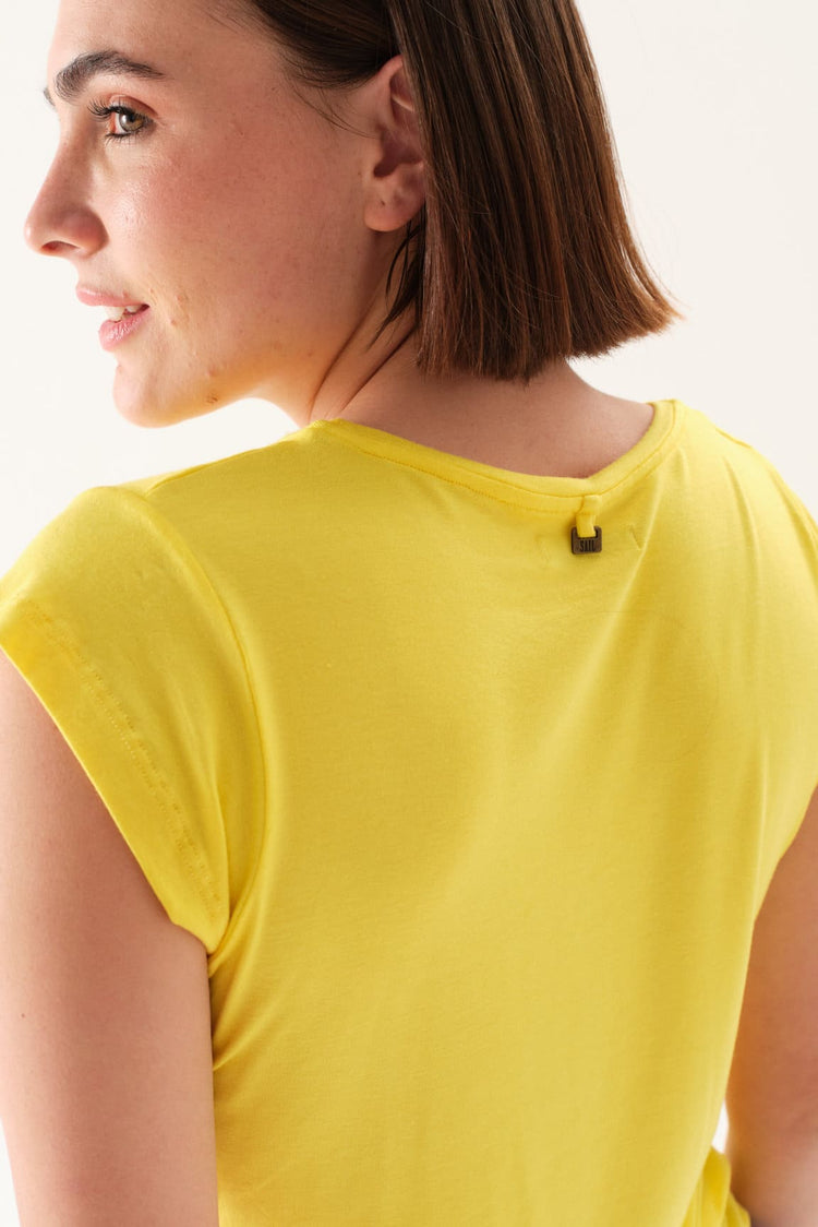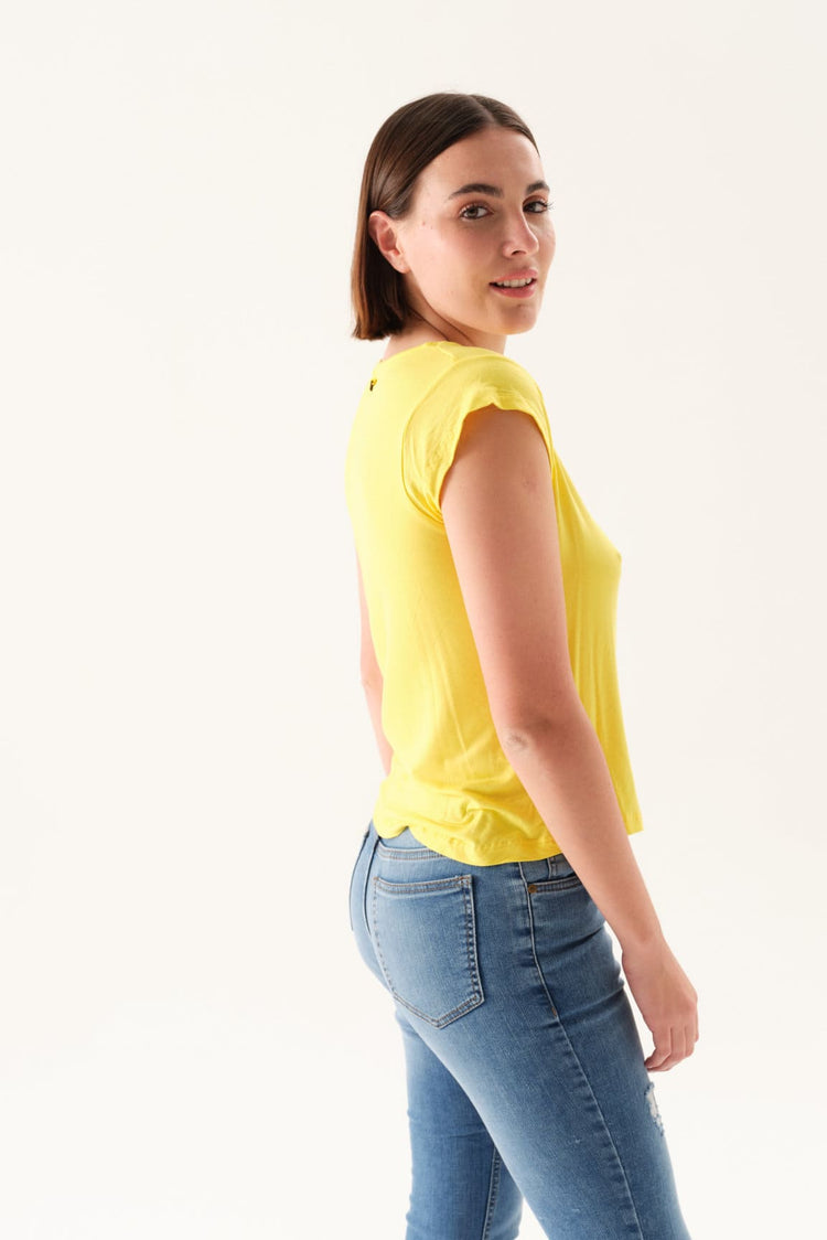 Referencia variante Amarillo: La modelo mide 1,79m y está usando talle M.