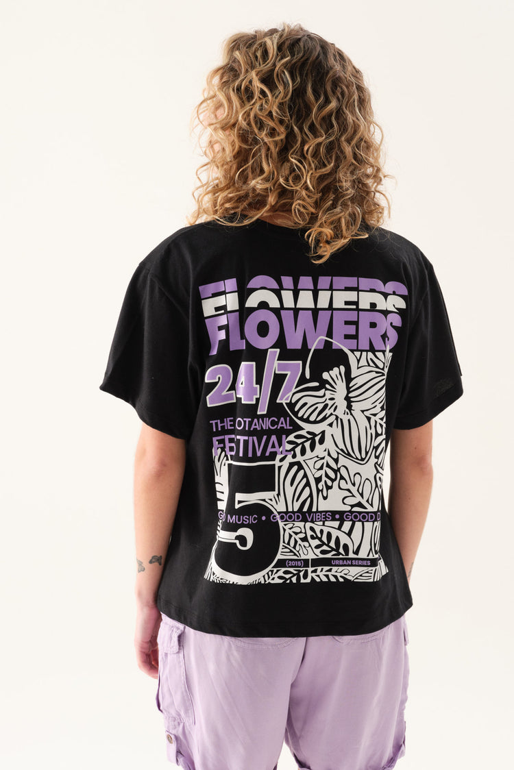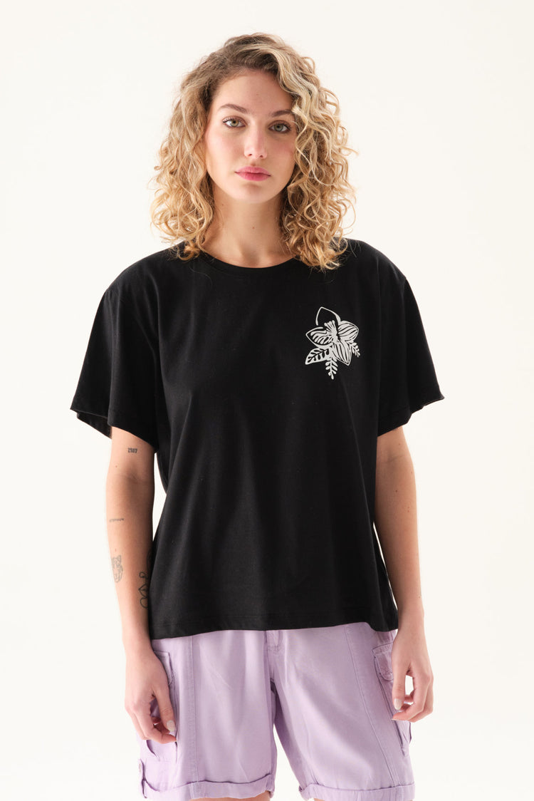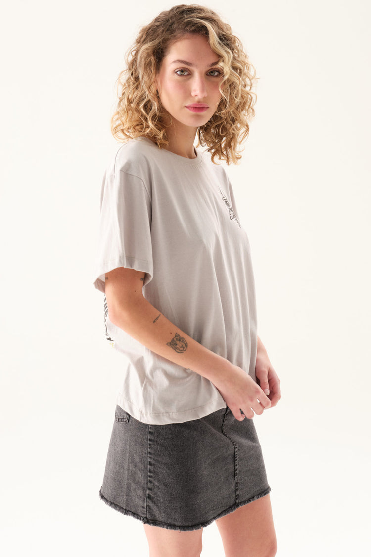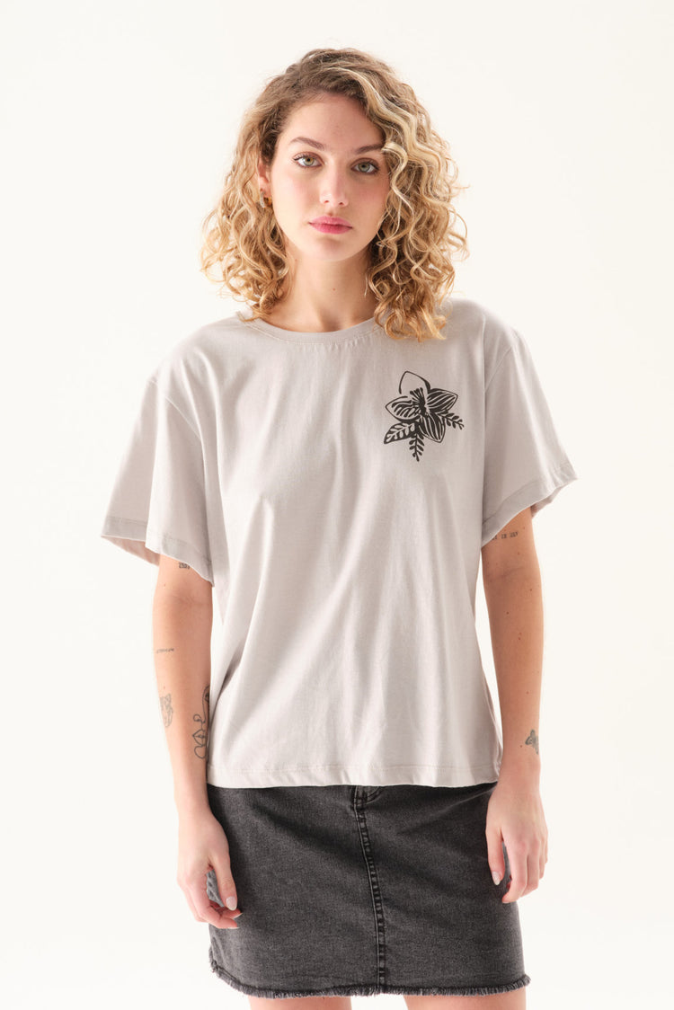Remera de jersey con escote redondo, manga corta y estampa en delantero y espalda.