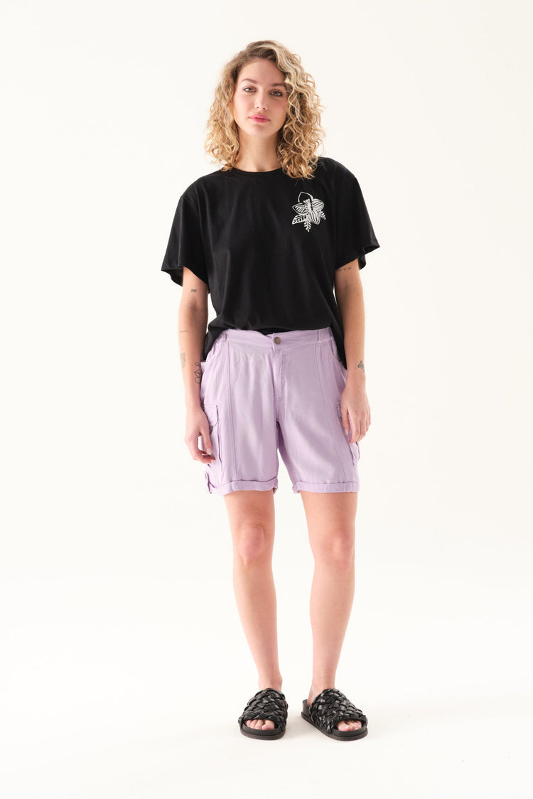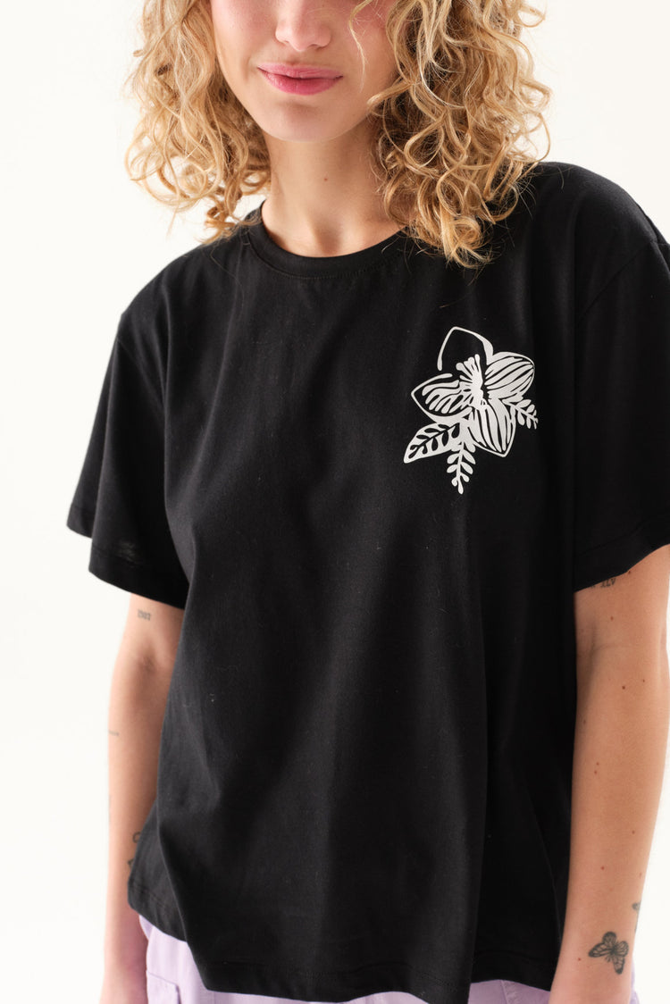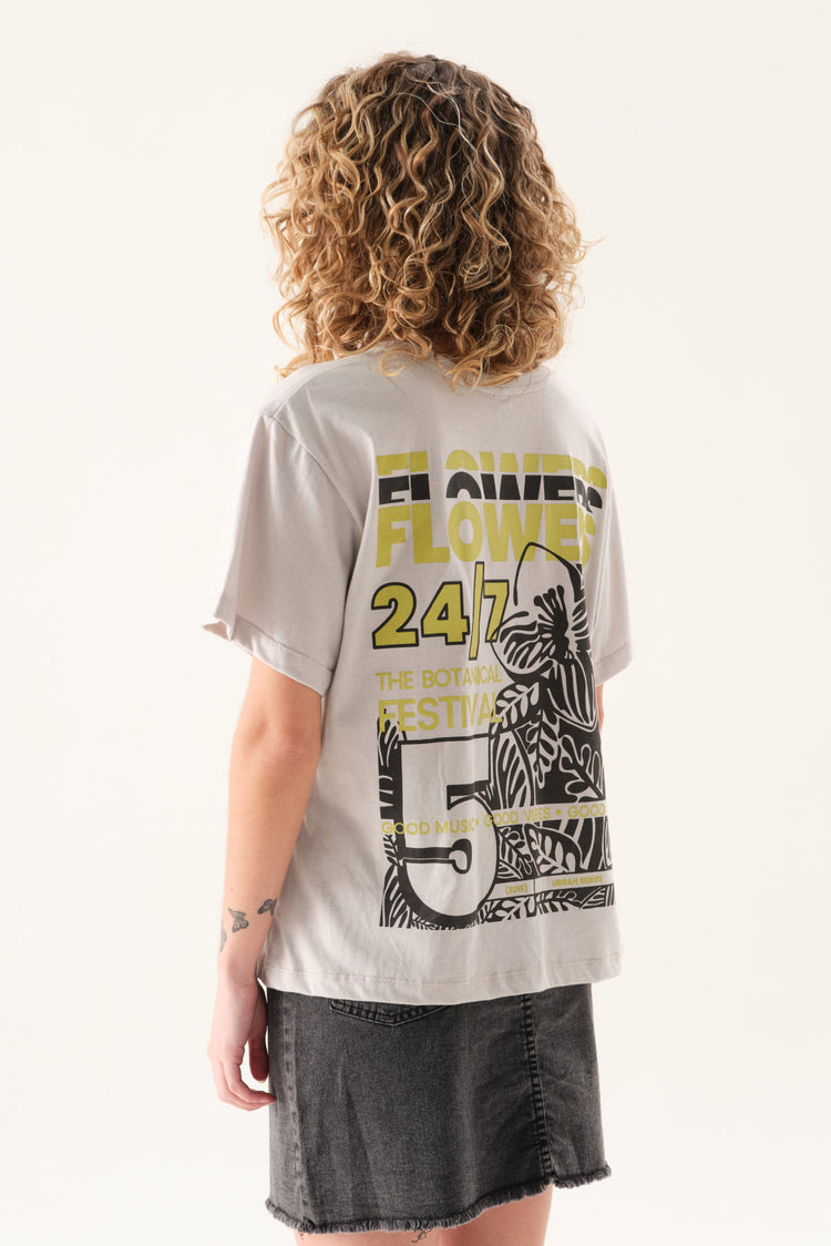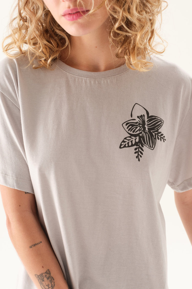 Remera de jersey con escote redondo, manga corta y estampa en delantero y espalda.