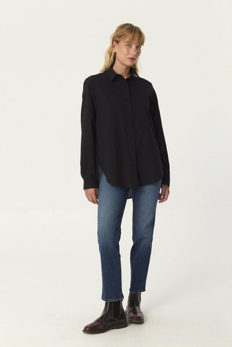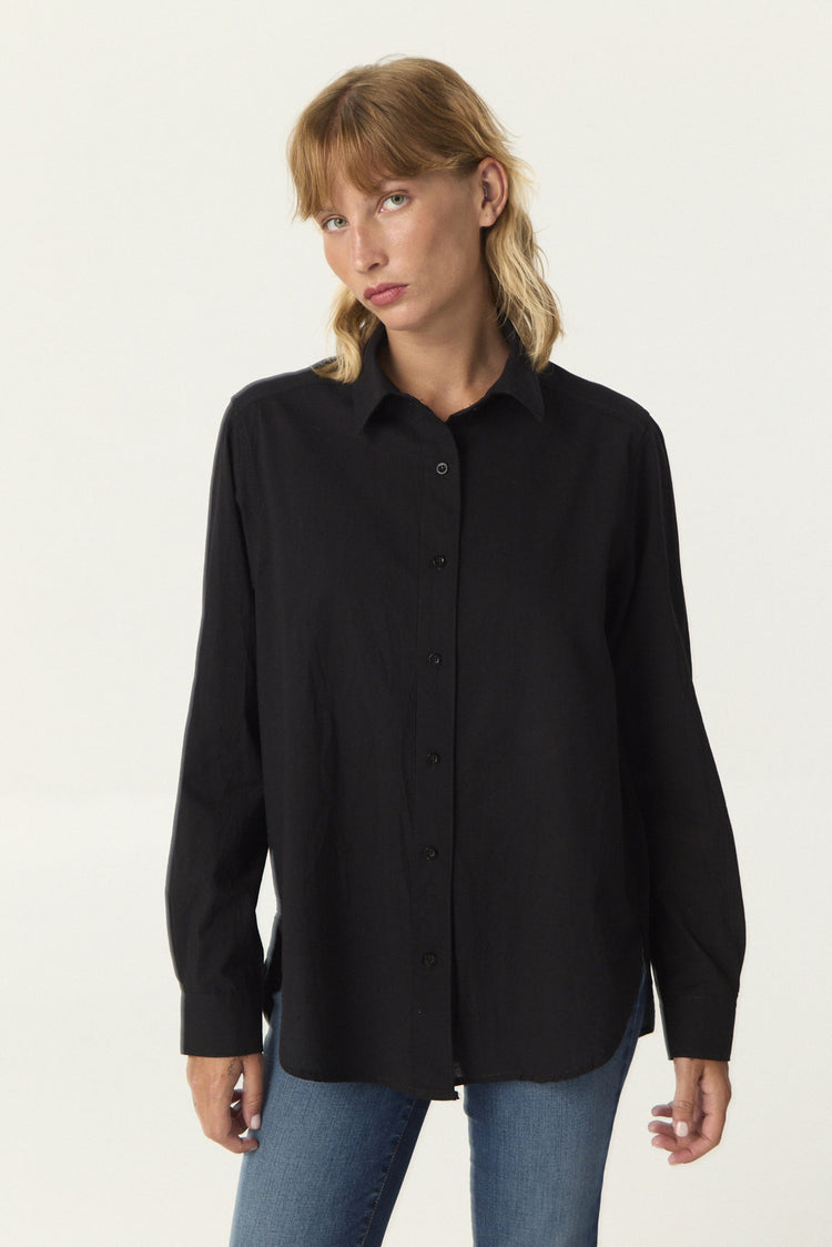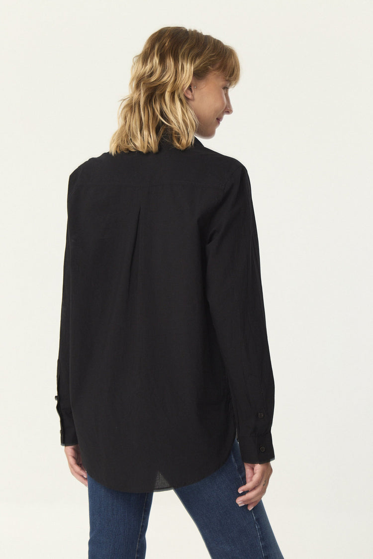 Camisa oversize de voile, con manga larga y canesú con tablón en espalda.