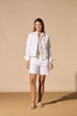 Campera blanca de jean clásica, regular fit. Posee bolsillo ojal, hilos al tono y avíos color níquel.