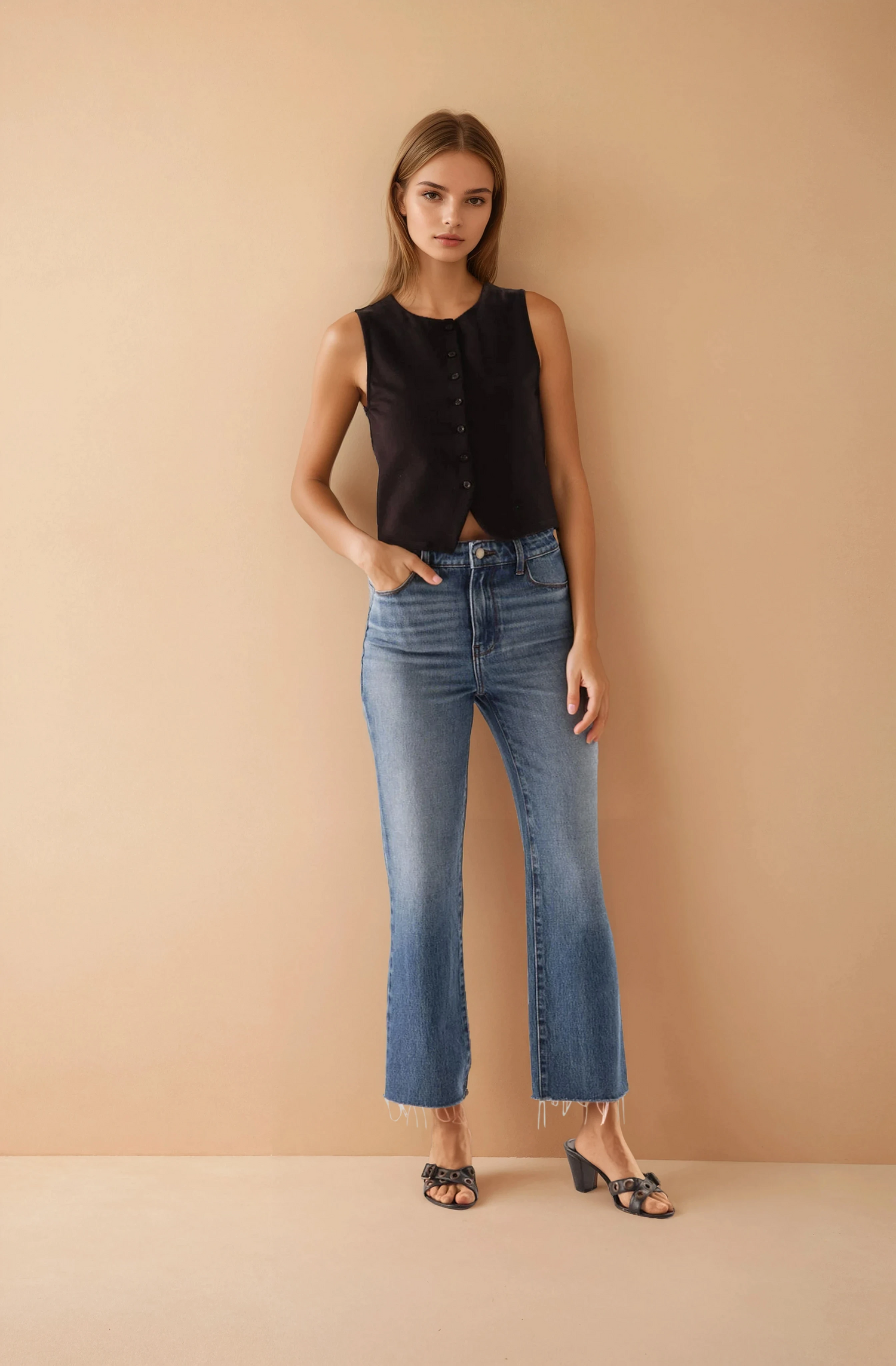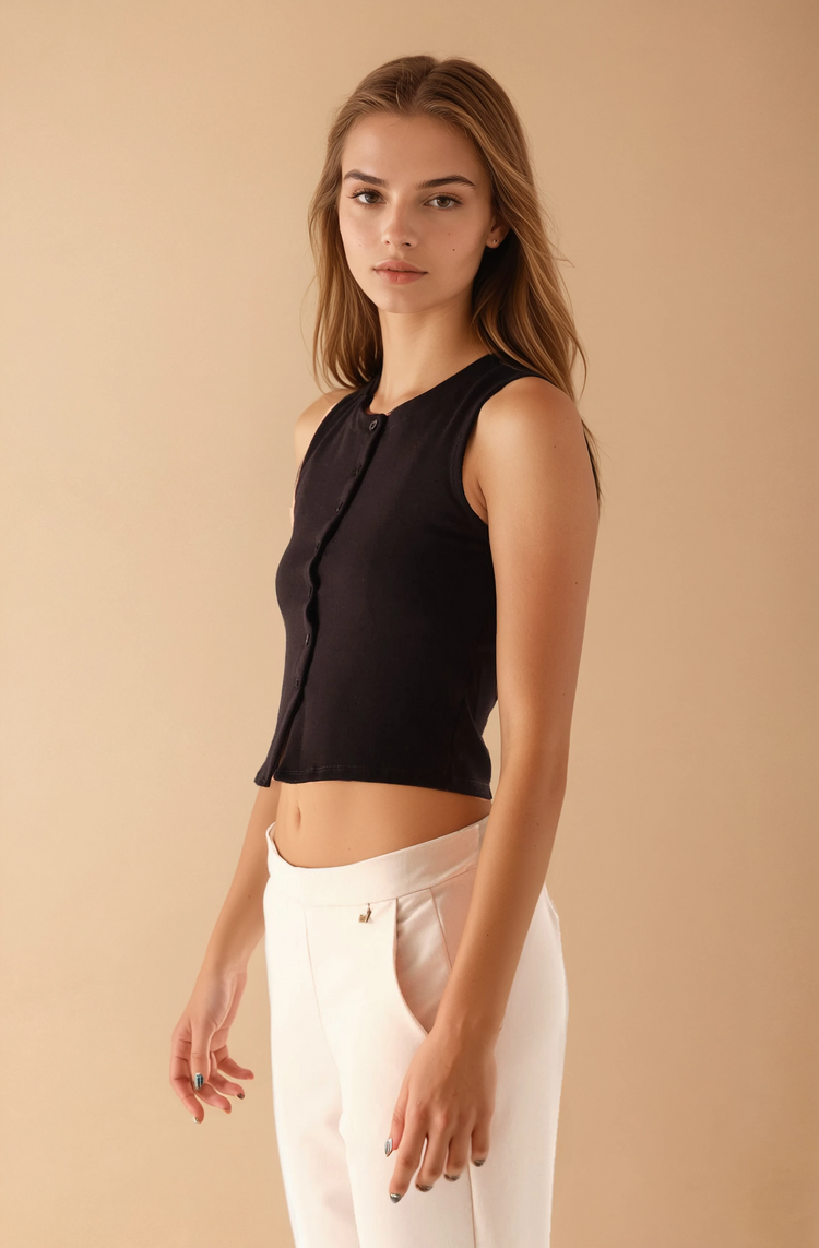 Chaleco de punto con botones en el frente.