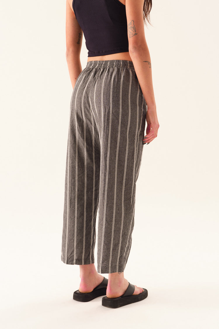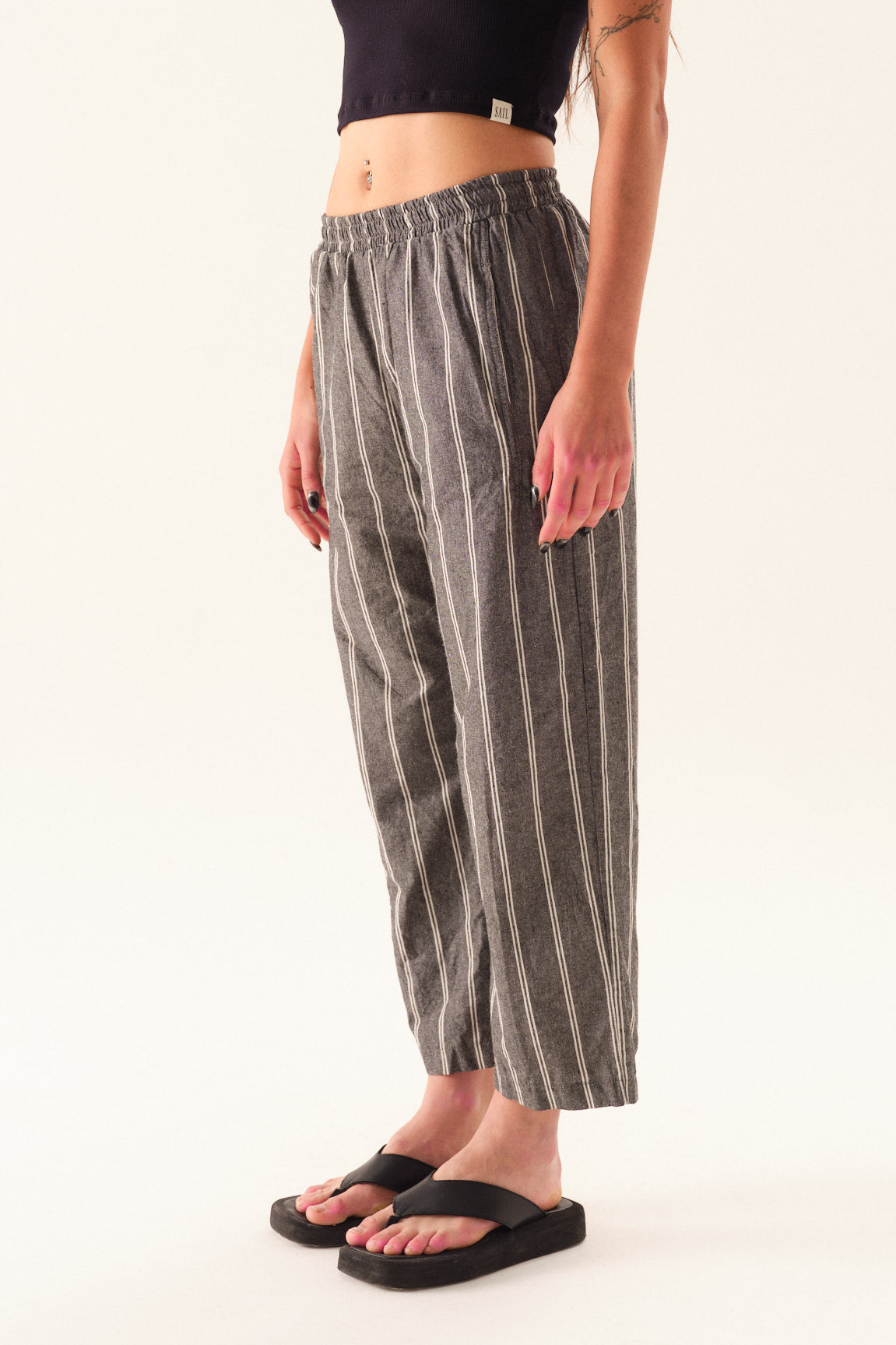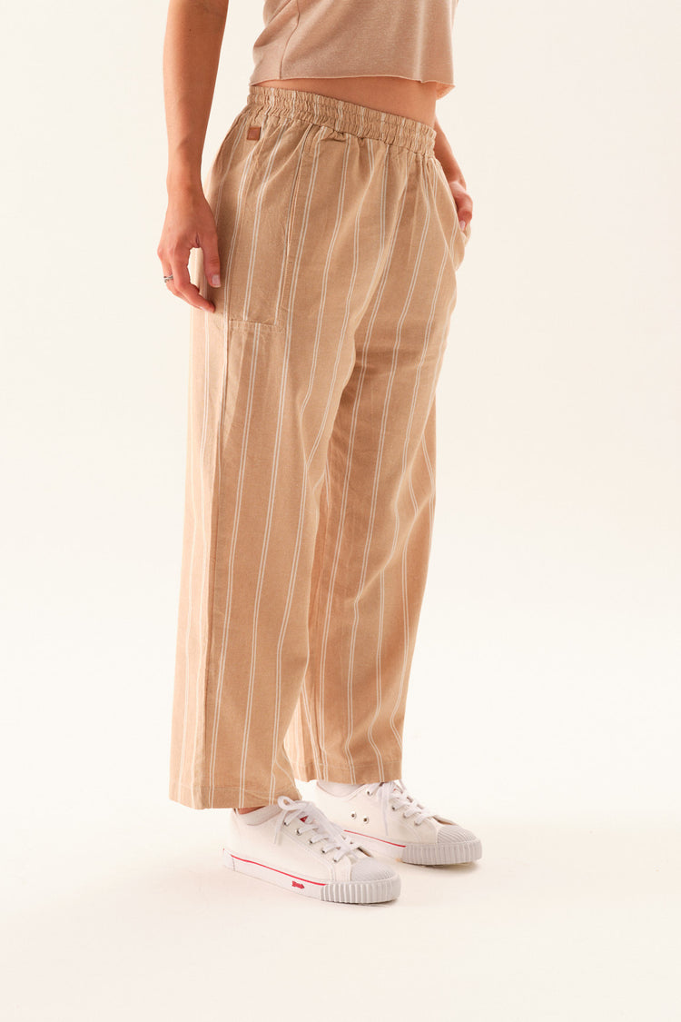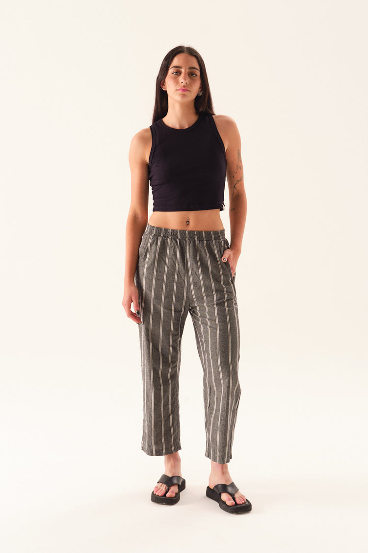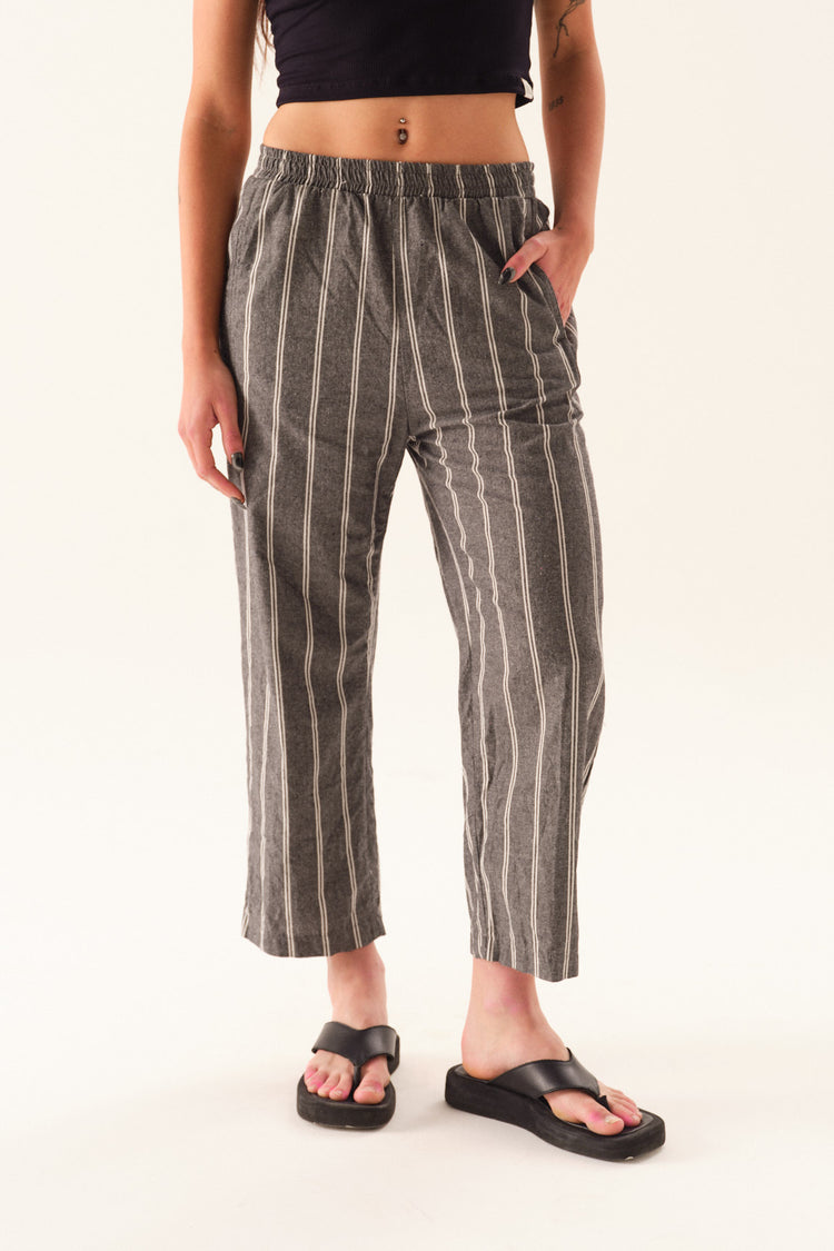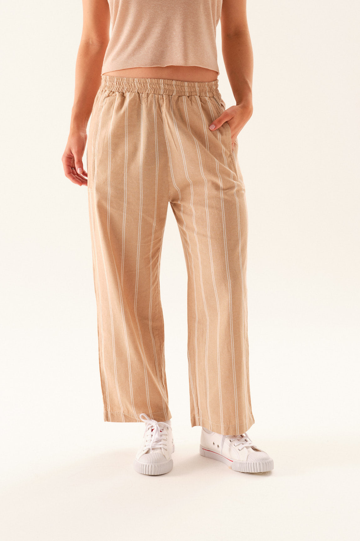 Pantalón cullote de algodón rayado con elástico en cintura.