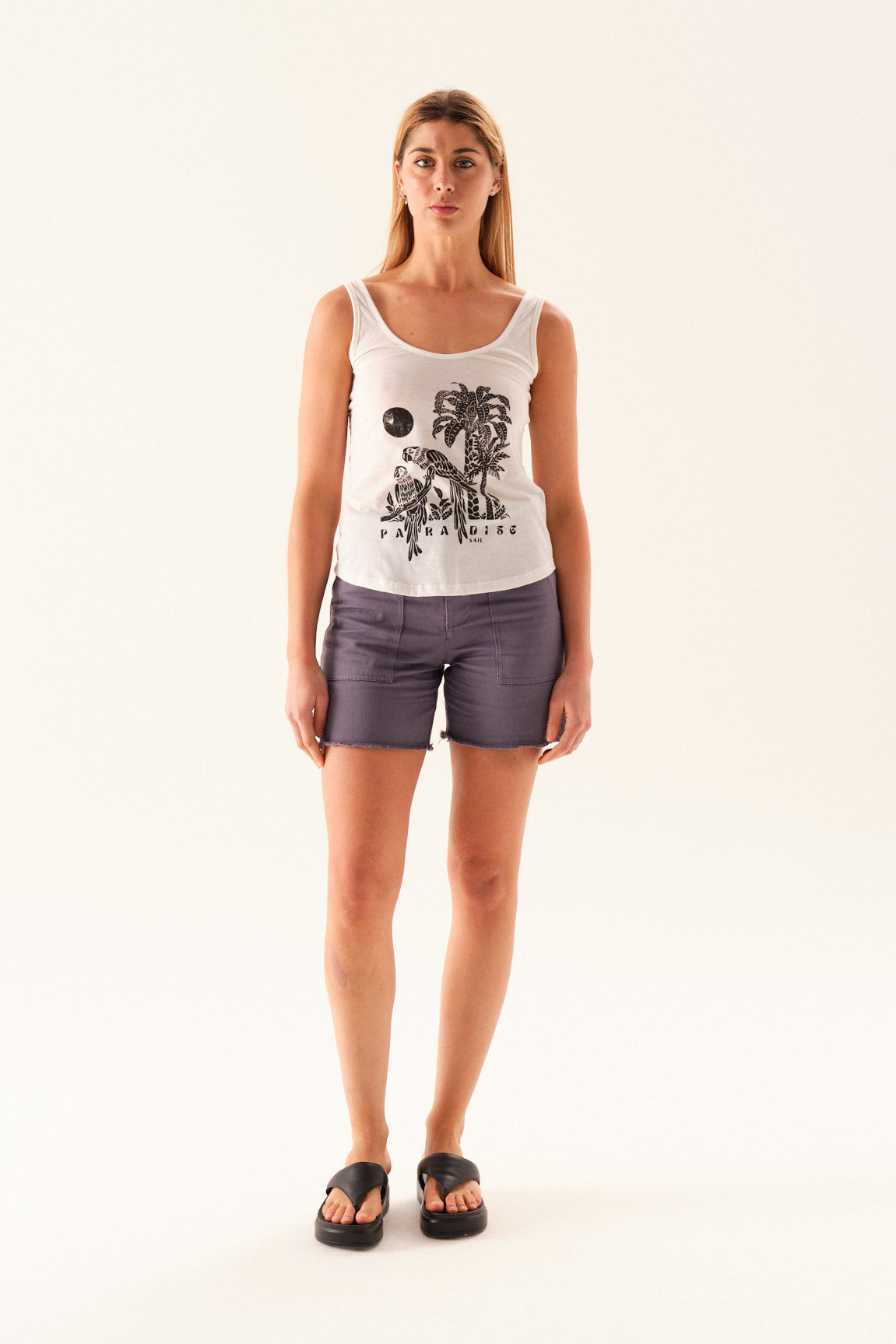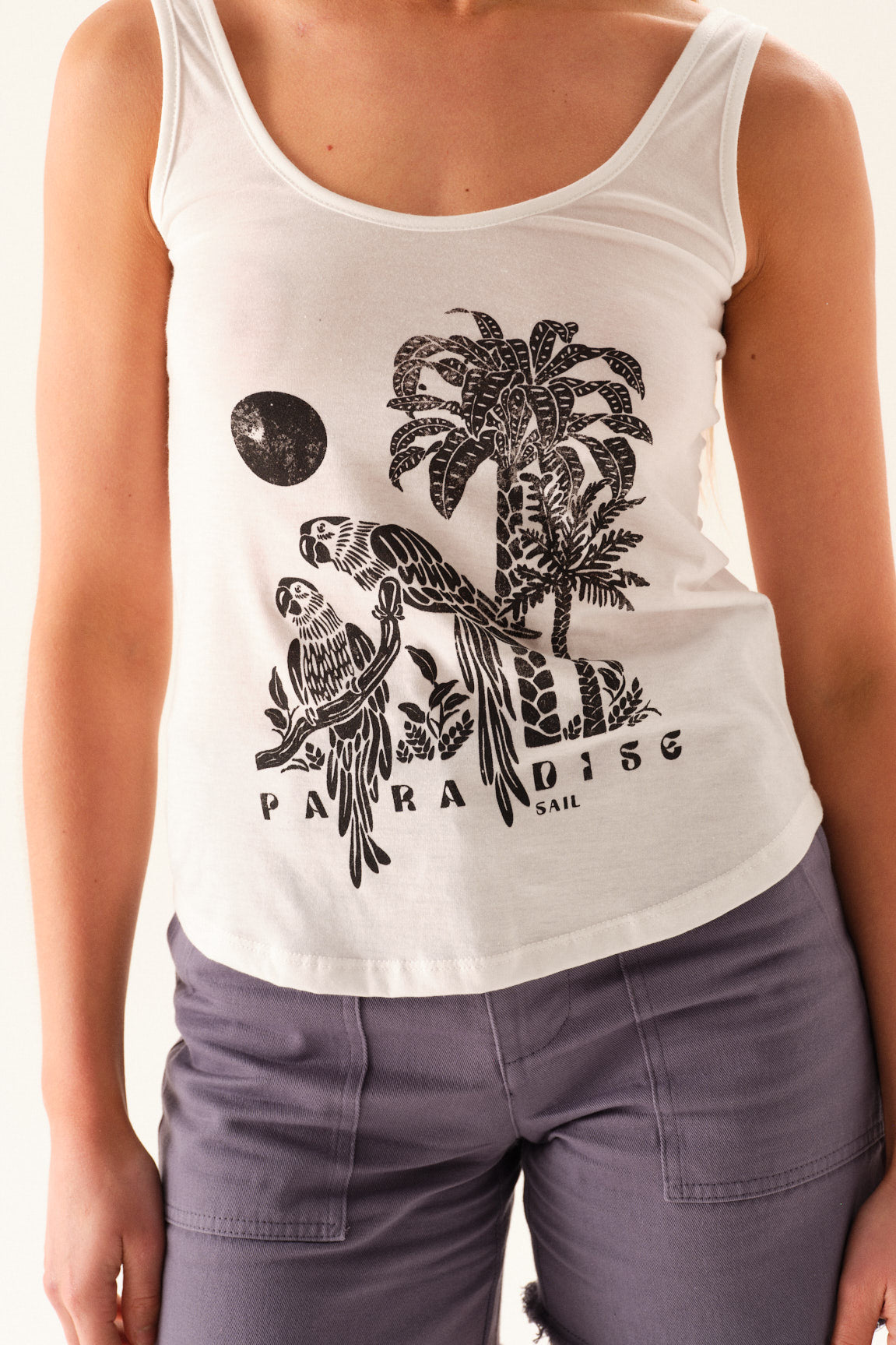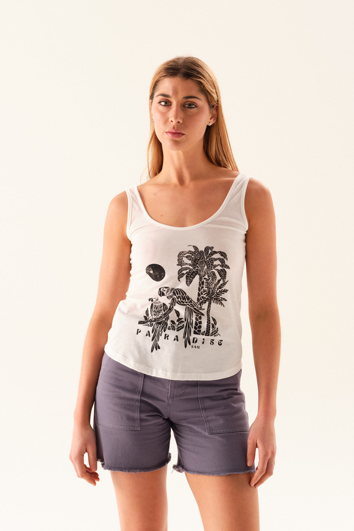 Top de jersey con espalda cavada y breteles anchos. Lleva estampa en el delantero.
