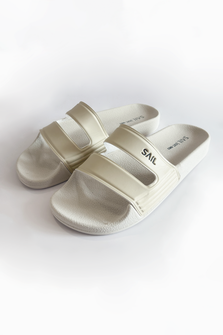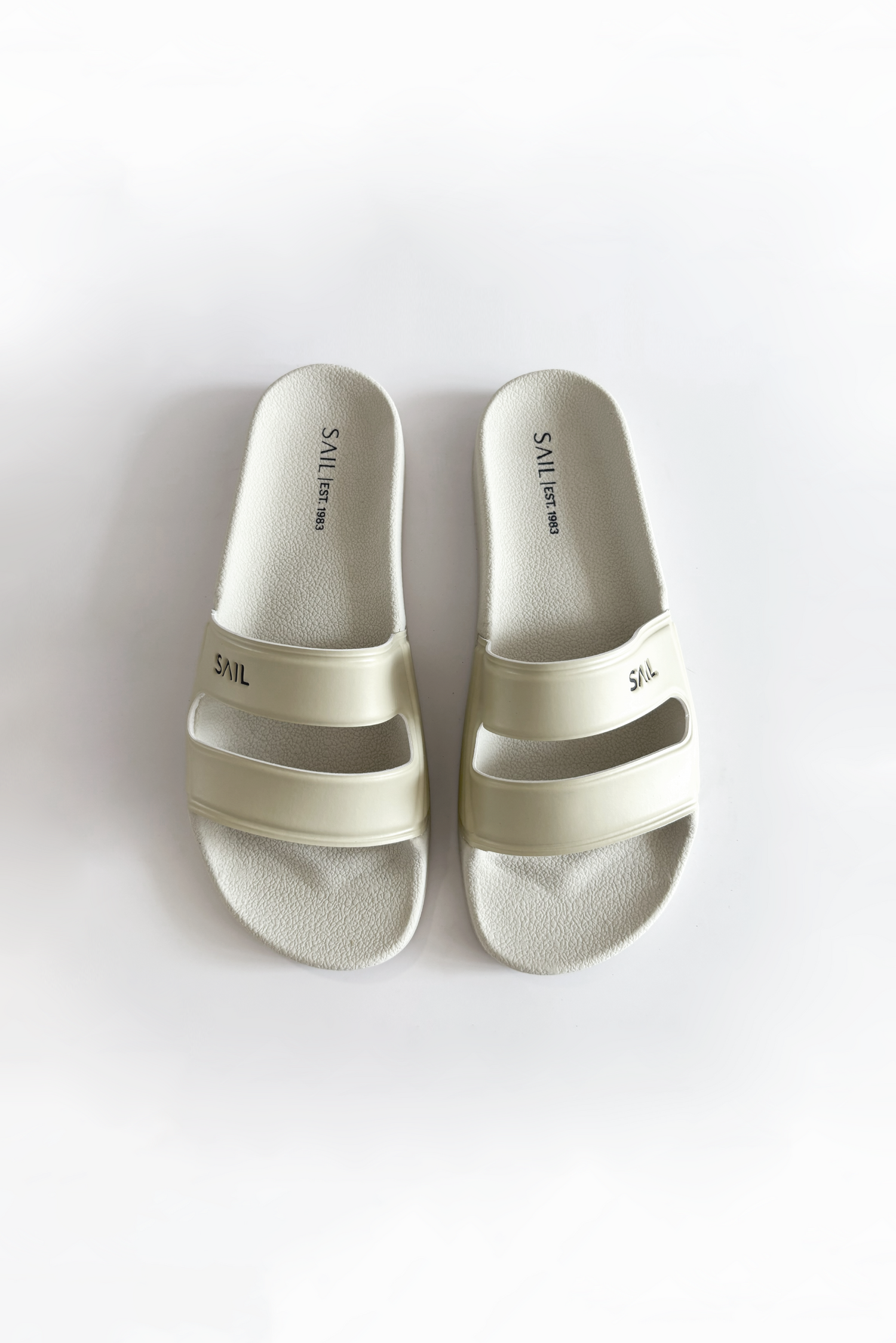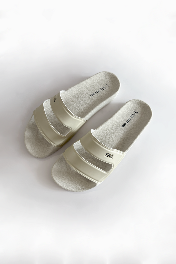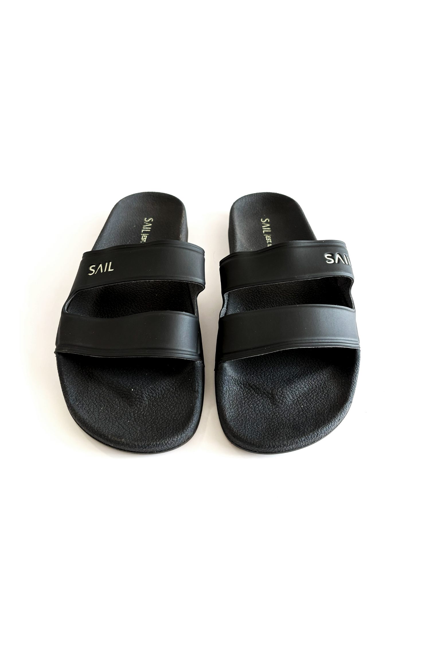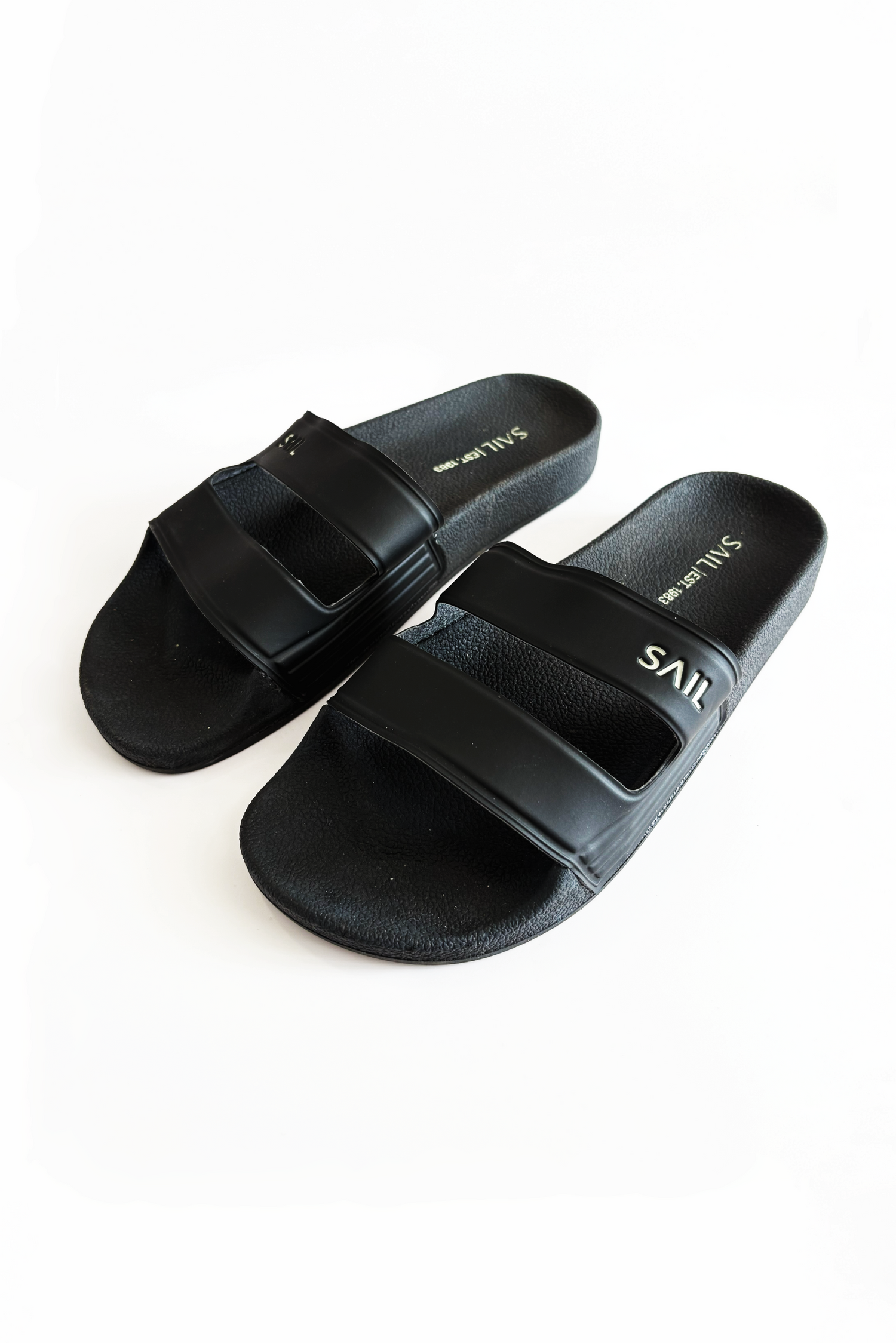 Sandalia con capellada duo con logo serigrafia y alta frecuencia.