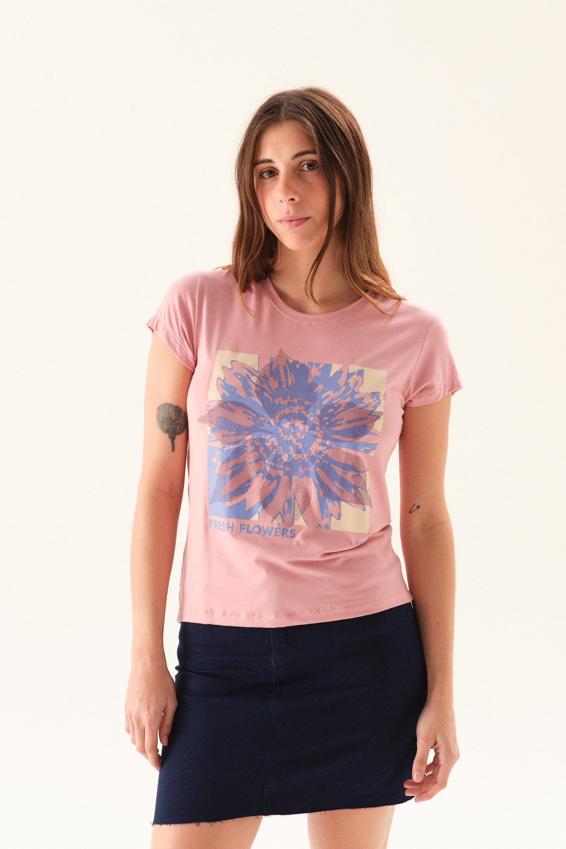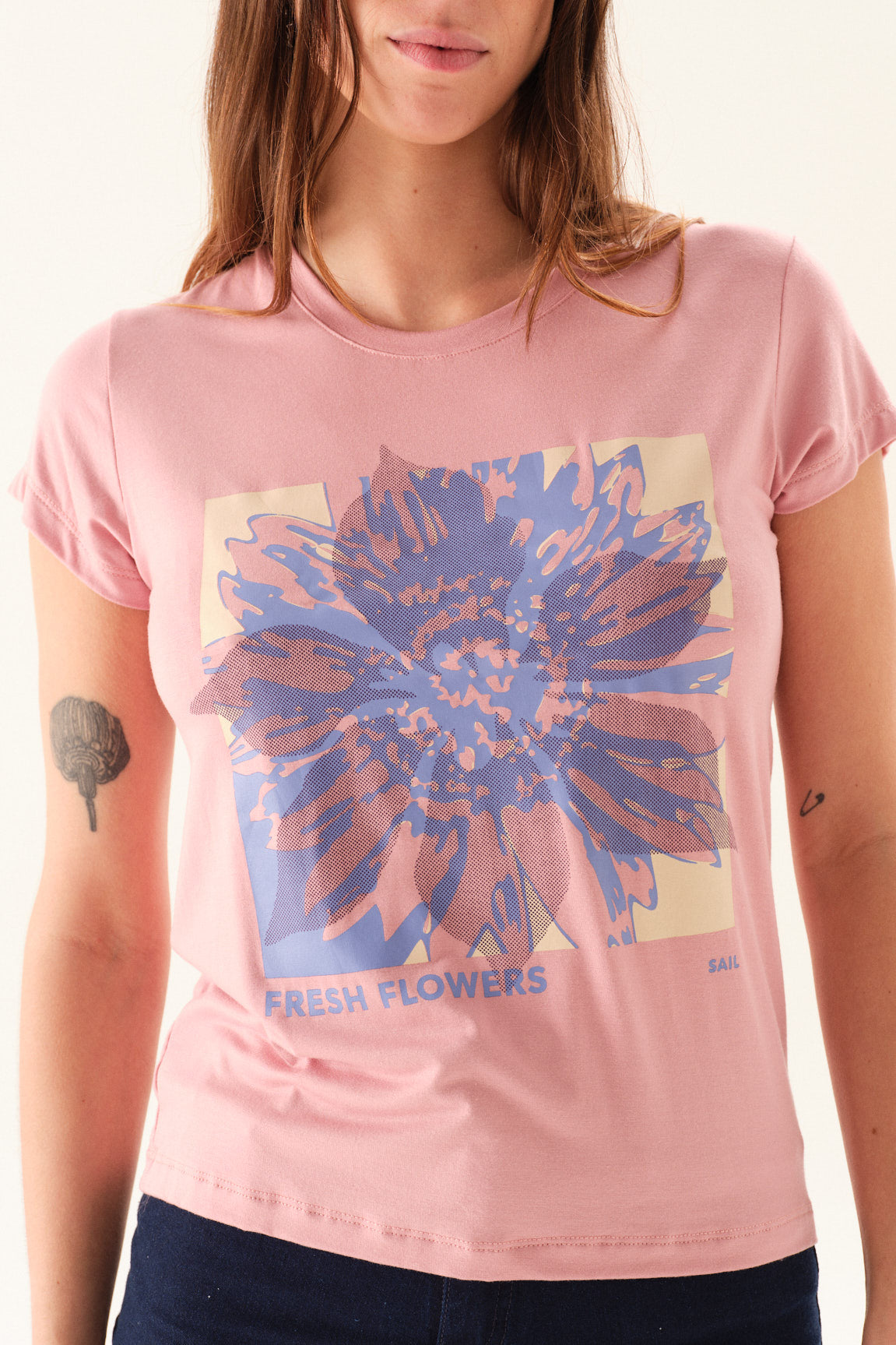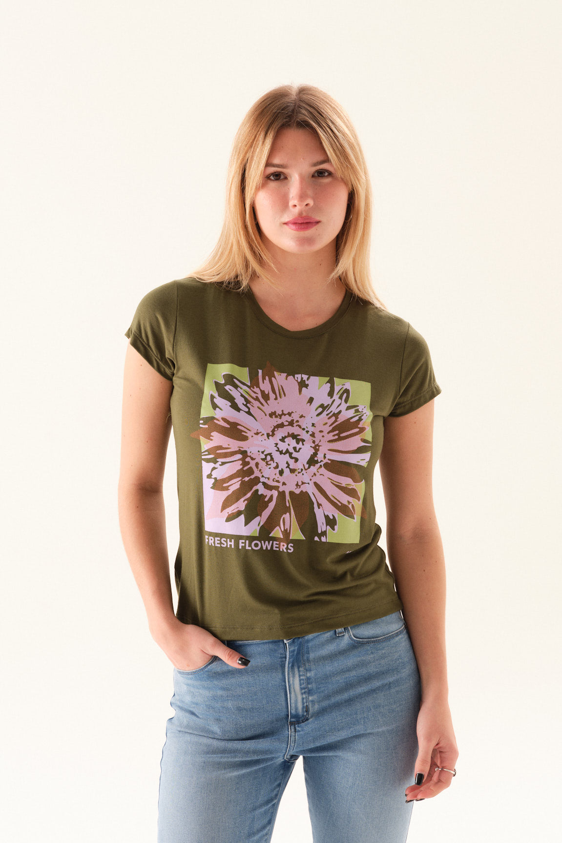 Remera de modal con escote redondo y manga corta. Lleva estampa en el delantero.