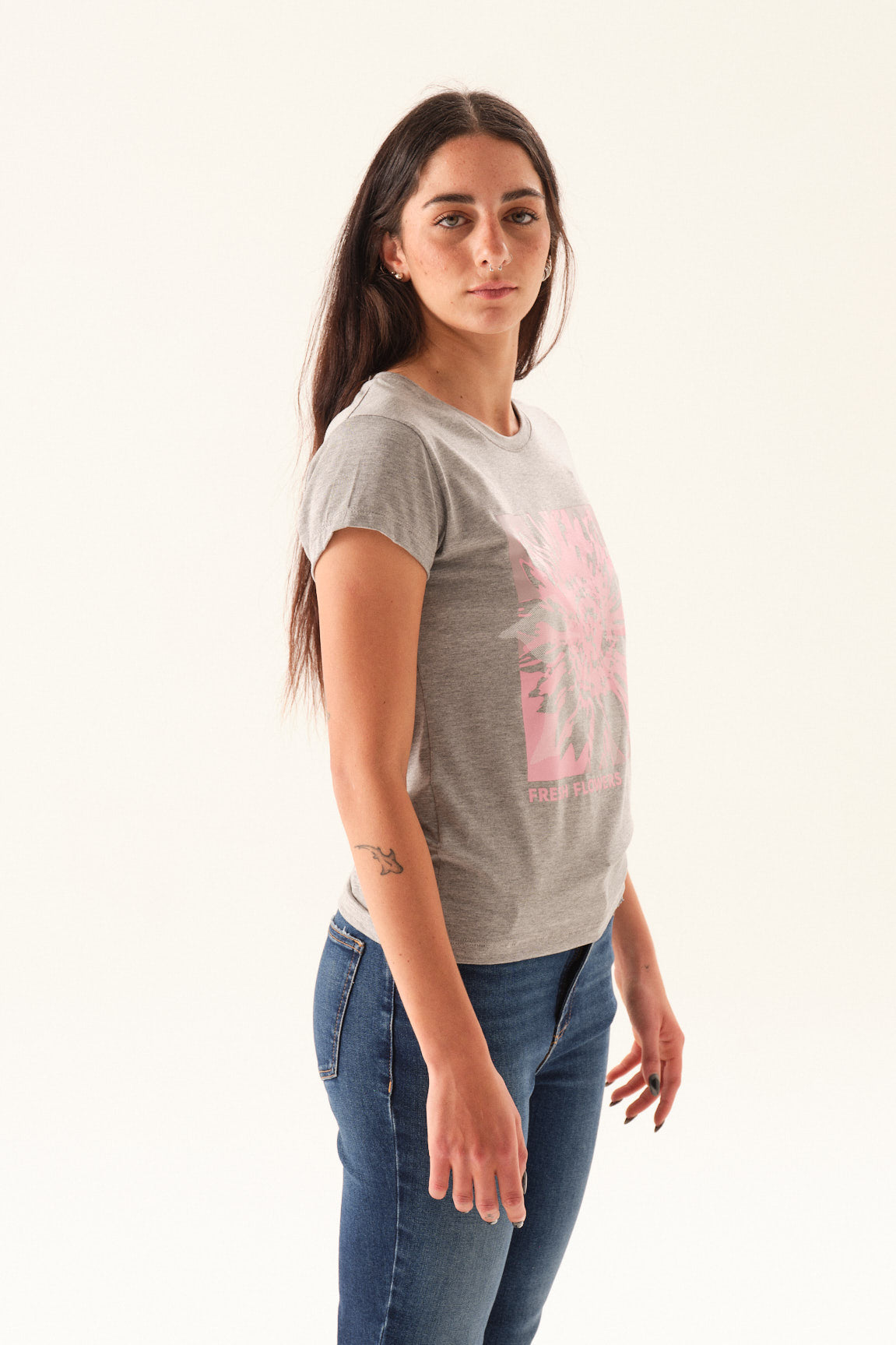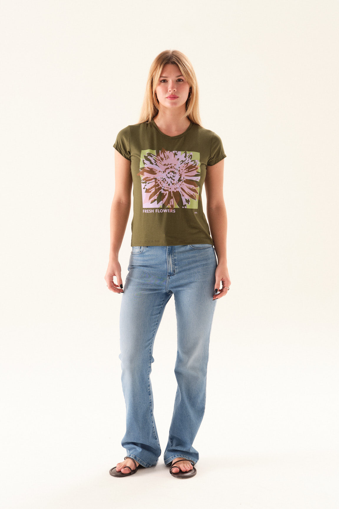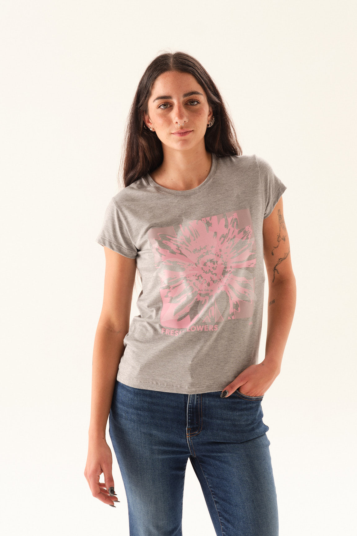 Remera de modal con escote redondo y manga corta. Lleva estampa en el delantero.
