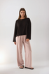 Sweater de lanilla soft, con escote redondo, recortes en frente y espalda, tajos laterales y puños anchos en terminación.