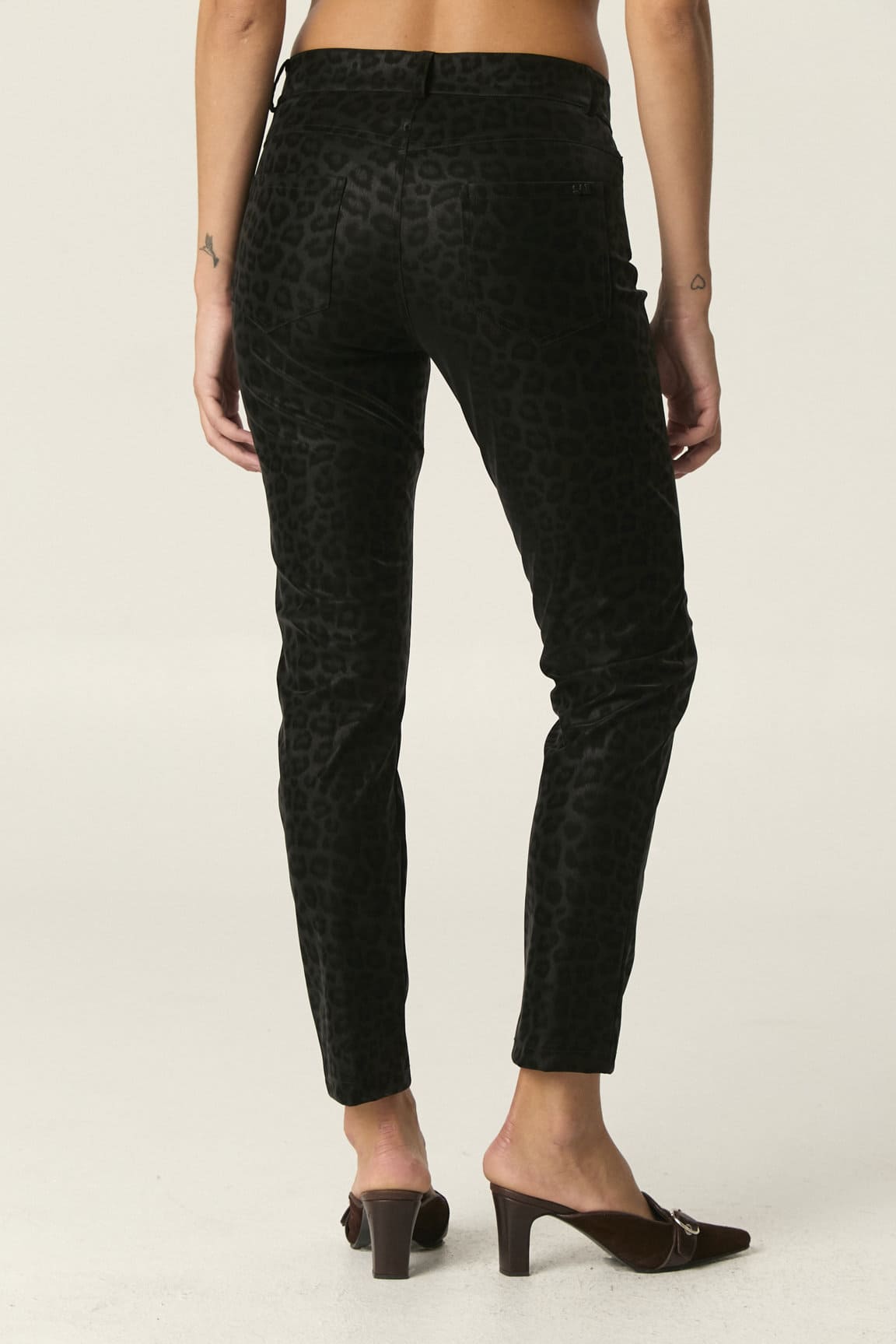 Pantalón de Pu animal print, recto slim, tiro medio. Tiene 5 bolsillos.