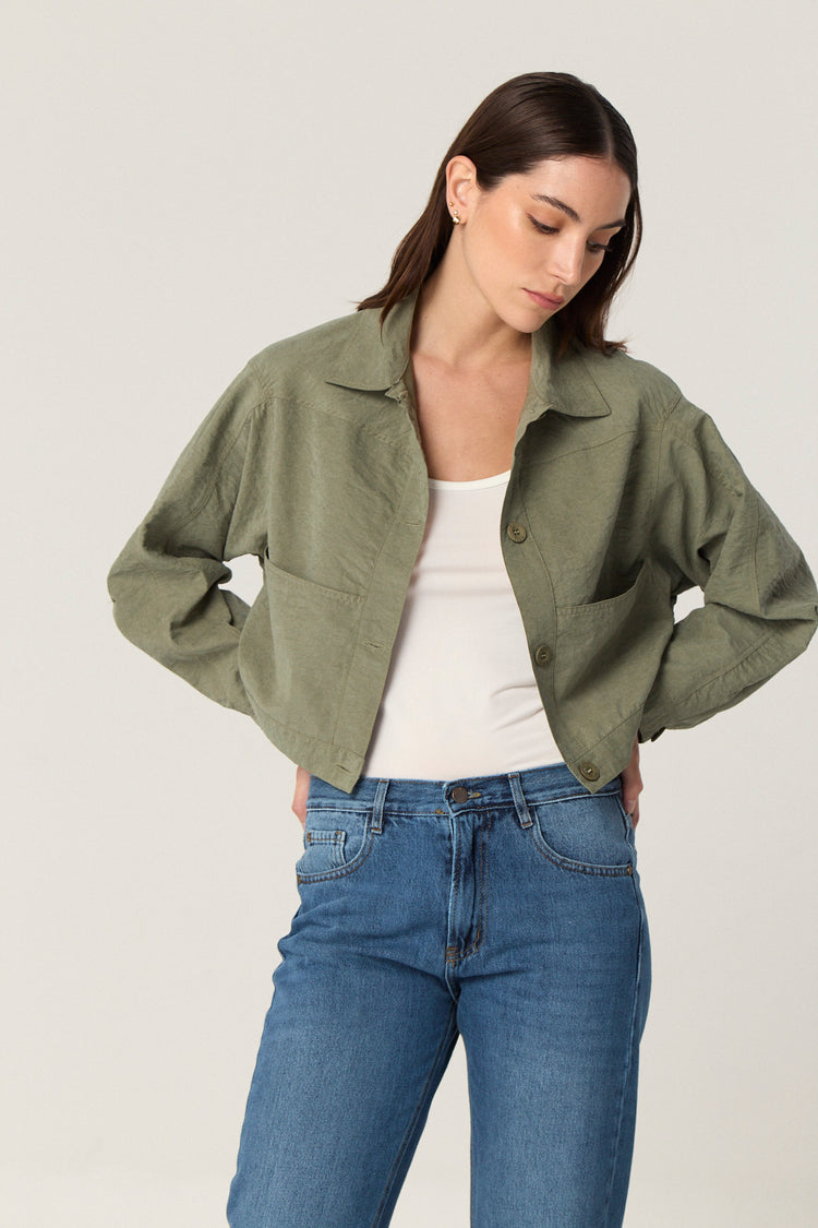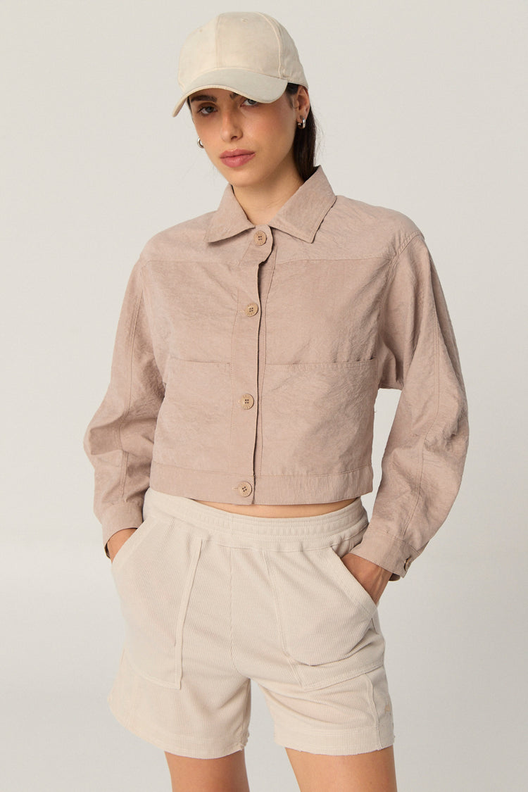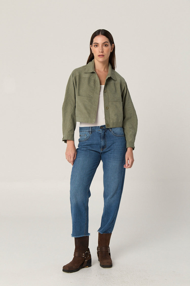 Chaqueta corta con bolsillos grandes con mangas murciélago