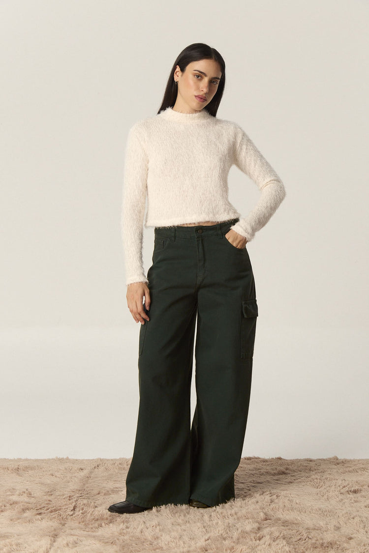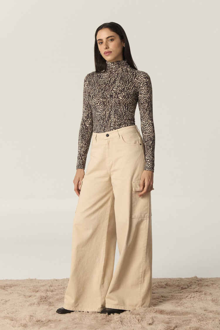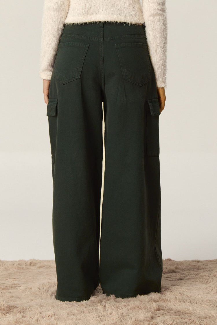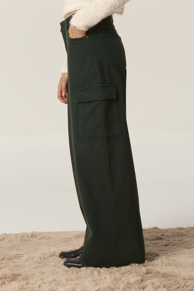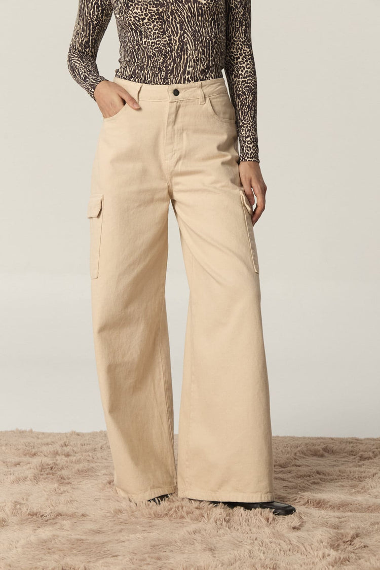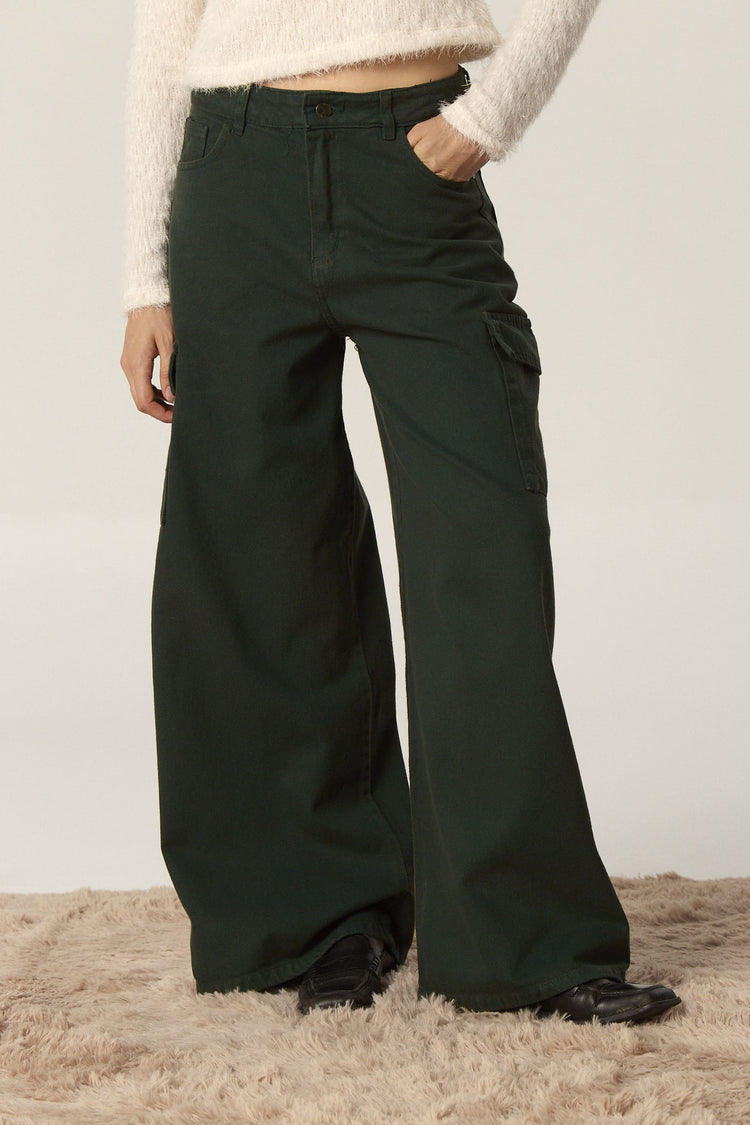 Un diseño amplio y relajado con un ajuste cómodo en la cintura y caída suelta en la pierna. Posee bolsillos laterales tipo cargo con solapa, además de los clásicos bolsillos delanteros y traseros.