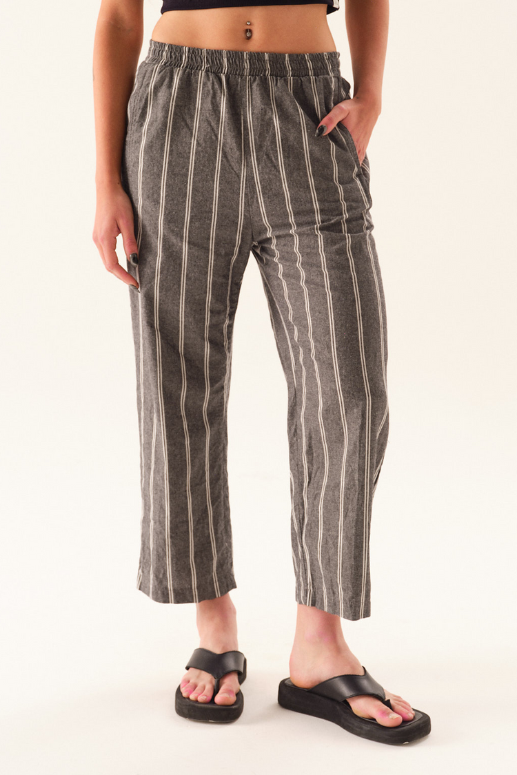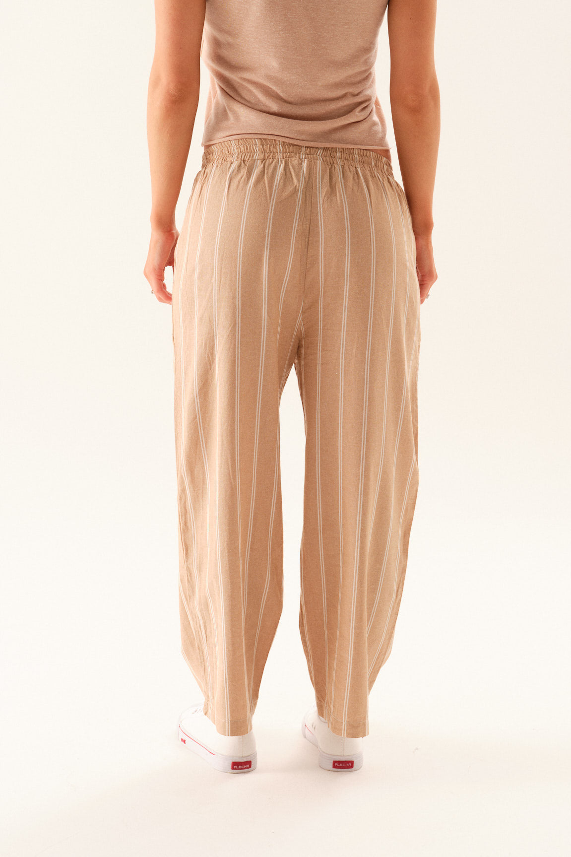 Pantalón cullote de algodón rayado con elástico en cintura.