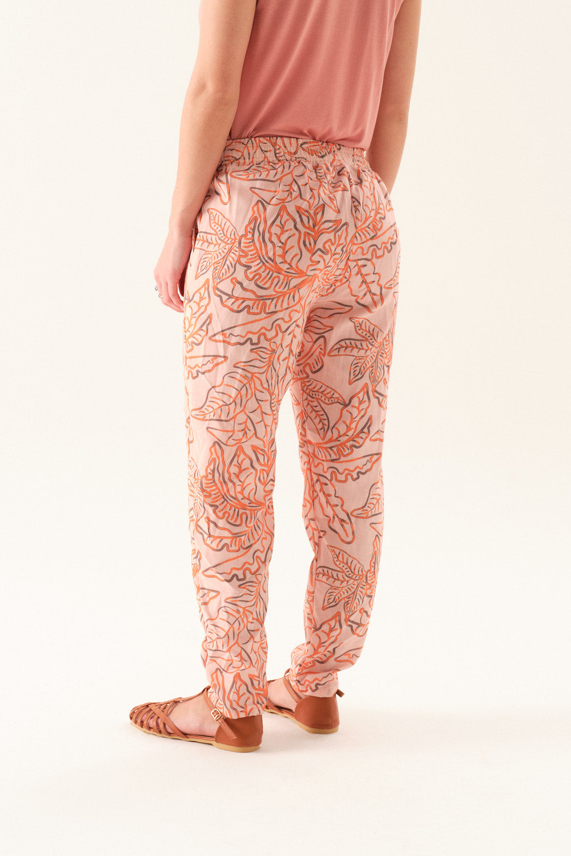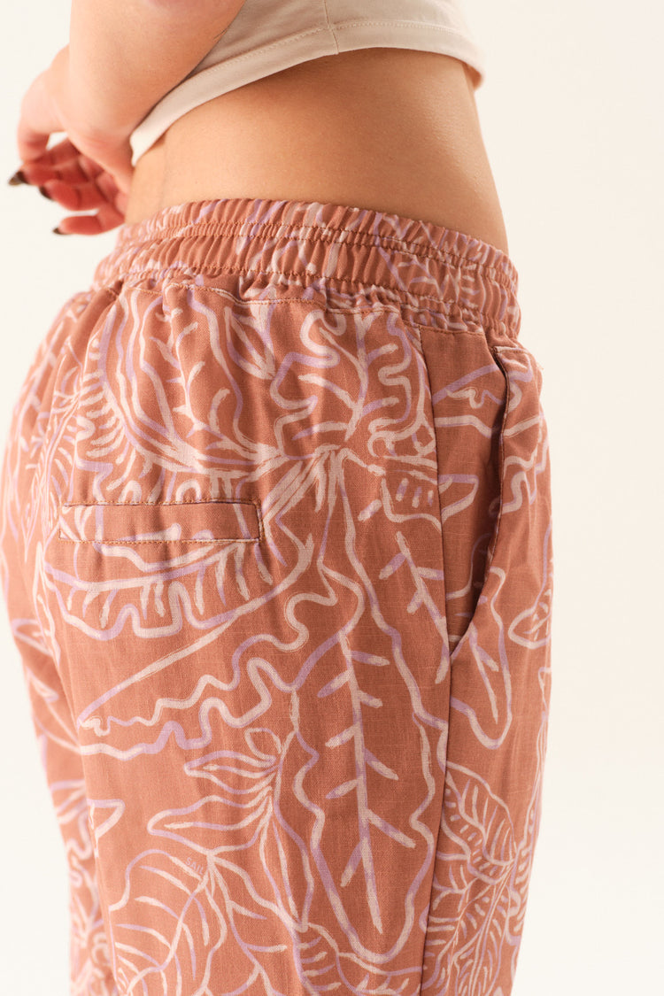 Pantalón babucha símil lino de estampa SAIL con bolsillos laterales y bolsillo ojal trasero. Tiene elástico en cintura.
