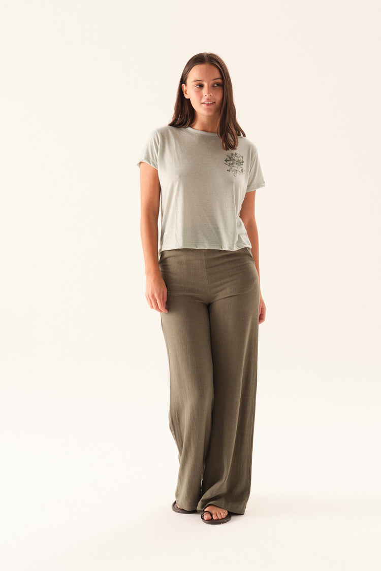 Remera de jersey lino con escote redondo y estampa en el delantero.