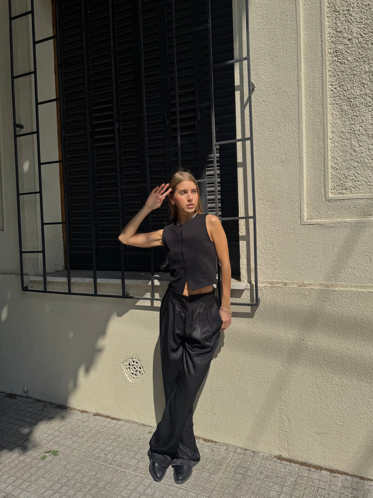 Pantalón sastrero de seda tencel, wide leg tiro alto. Posee pinzas.