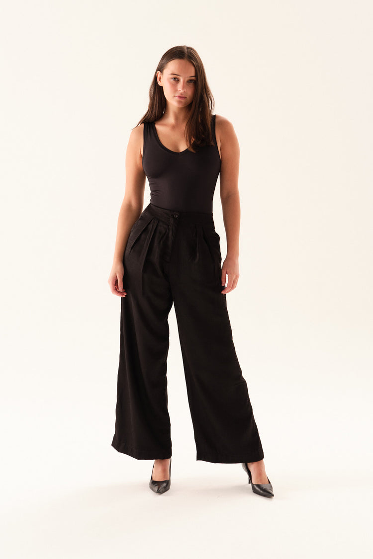 Body de elastano con escote redondo y breteles anchos. Posee snaps para abrochar.