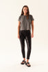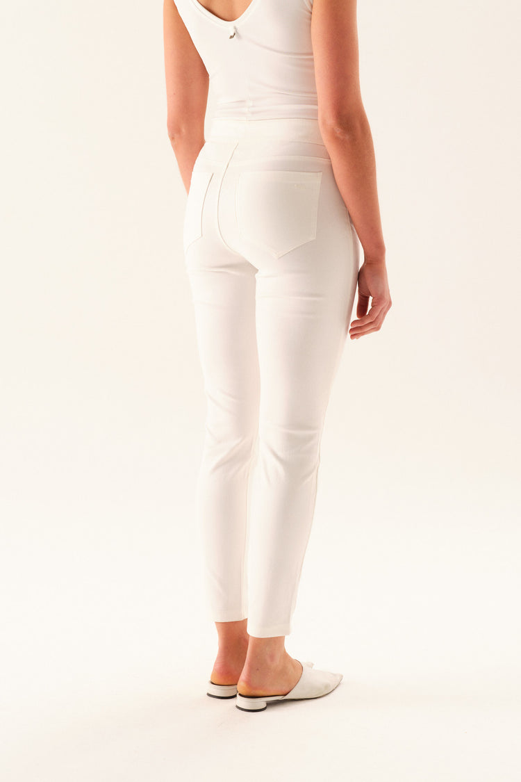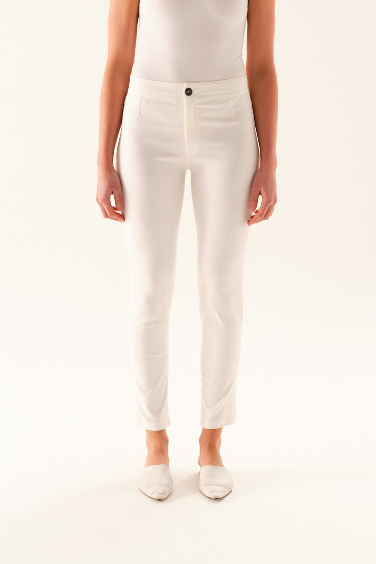 Pantalón de Bengalina estampada, tipo calza con bolsillos traseros.