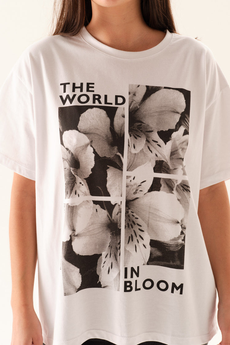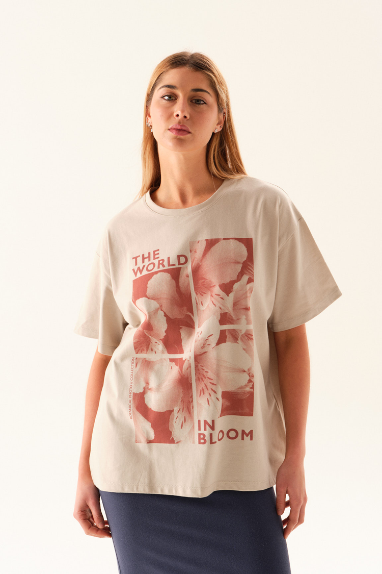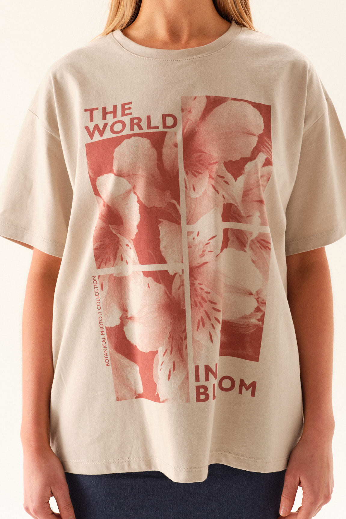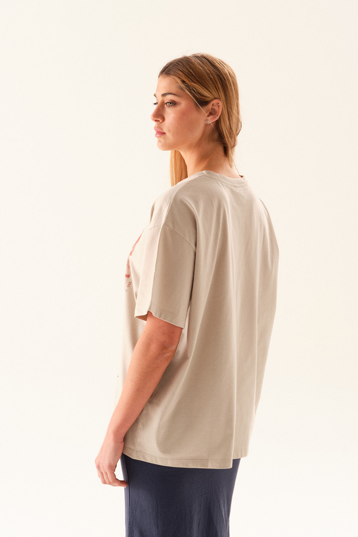 Remera de jersey oversize con escote redondo y manga corta. Lleva estampa en el delantero.
