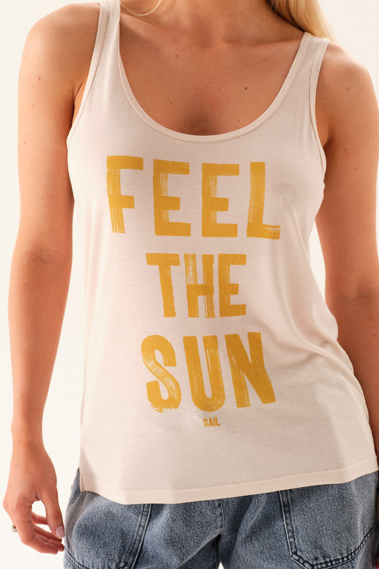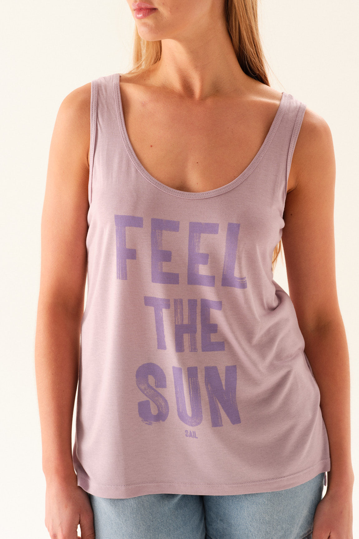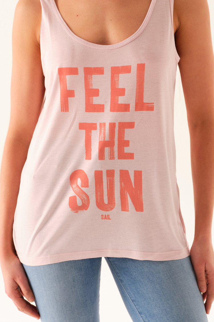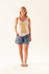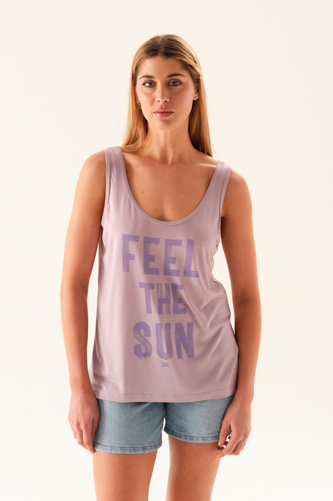 Top de viscosa con escote redondo y breteles anchos con martillo lateral a los costados. Lleva estampa en el delantero.