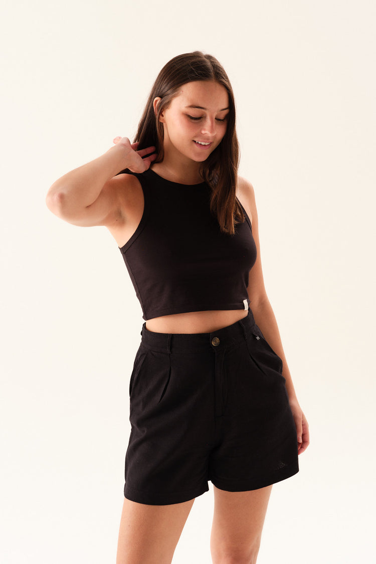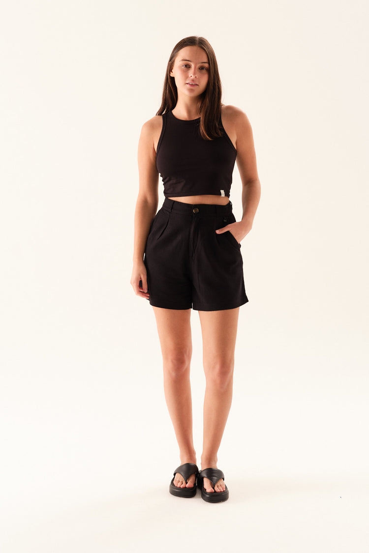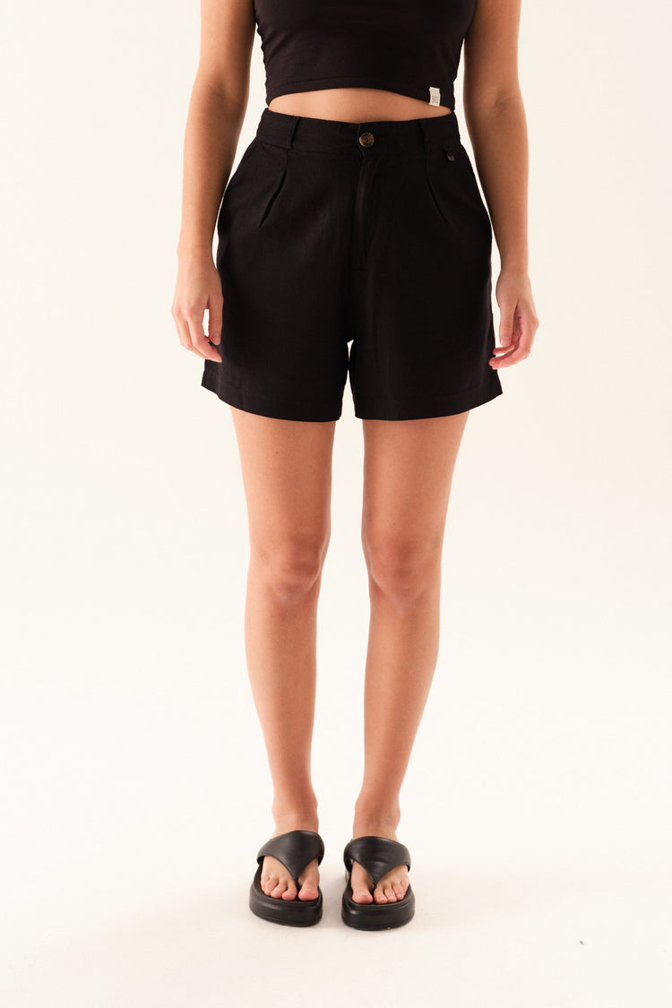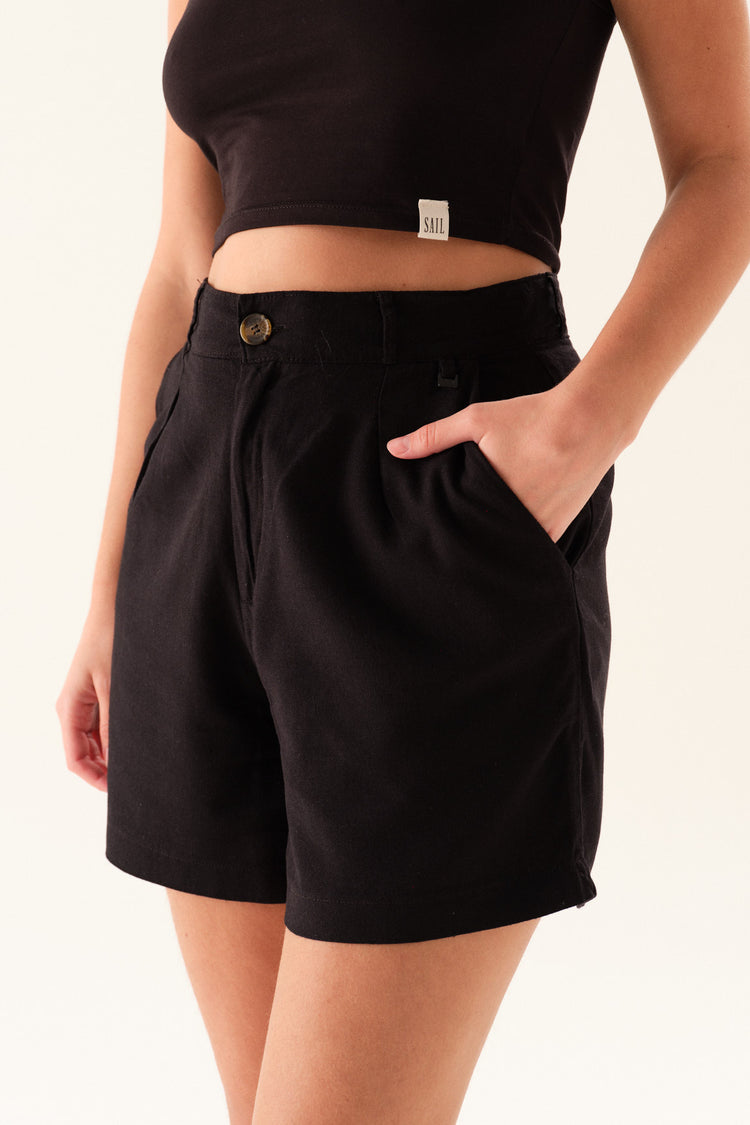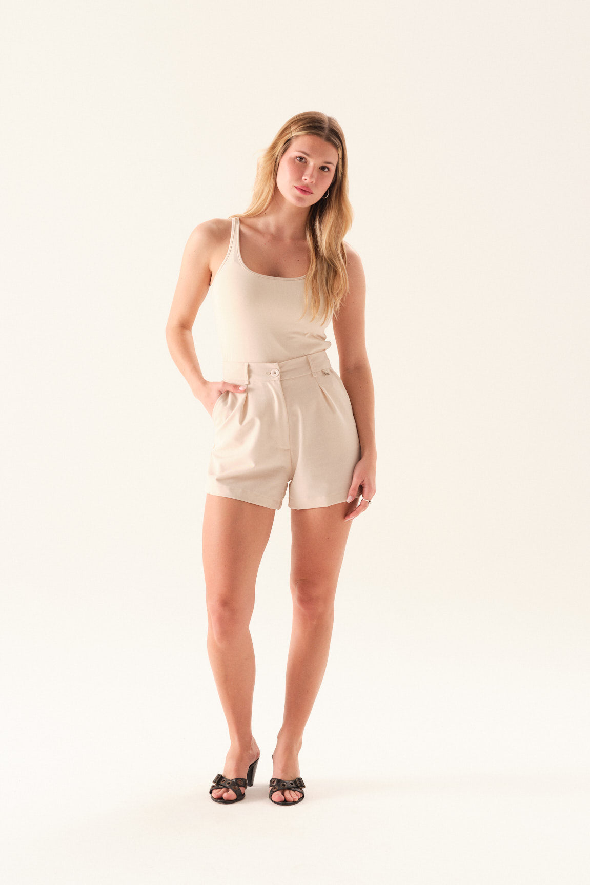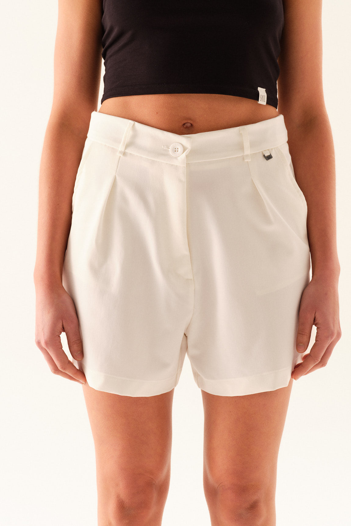 Bermuda sastrera a la cintura con pinzas y presillas finas.
