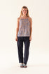 Blusa símil lino estampado, con breteles regulables y escote cuadrado.