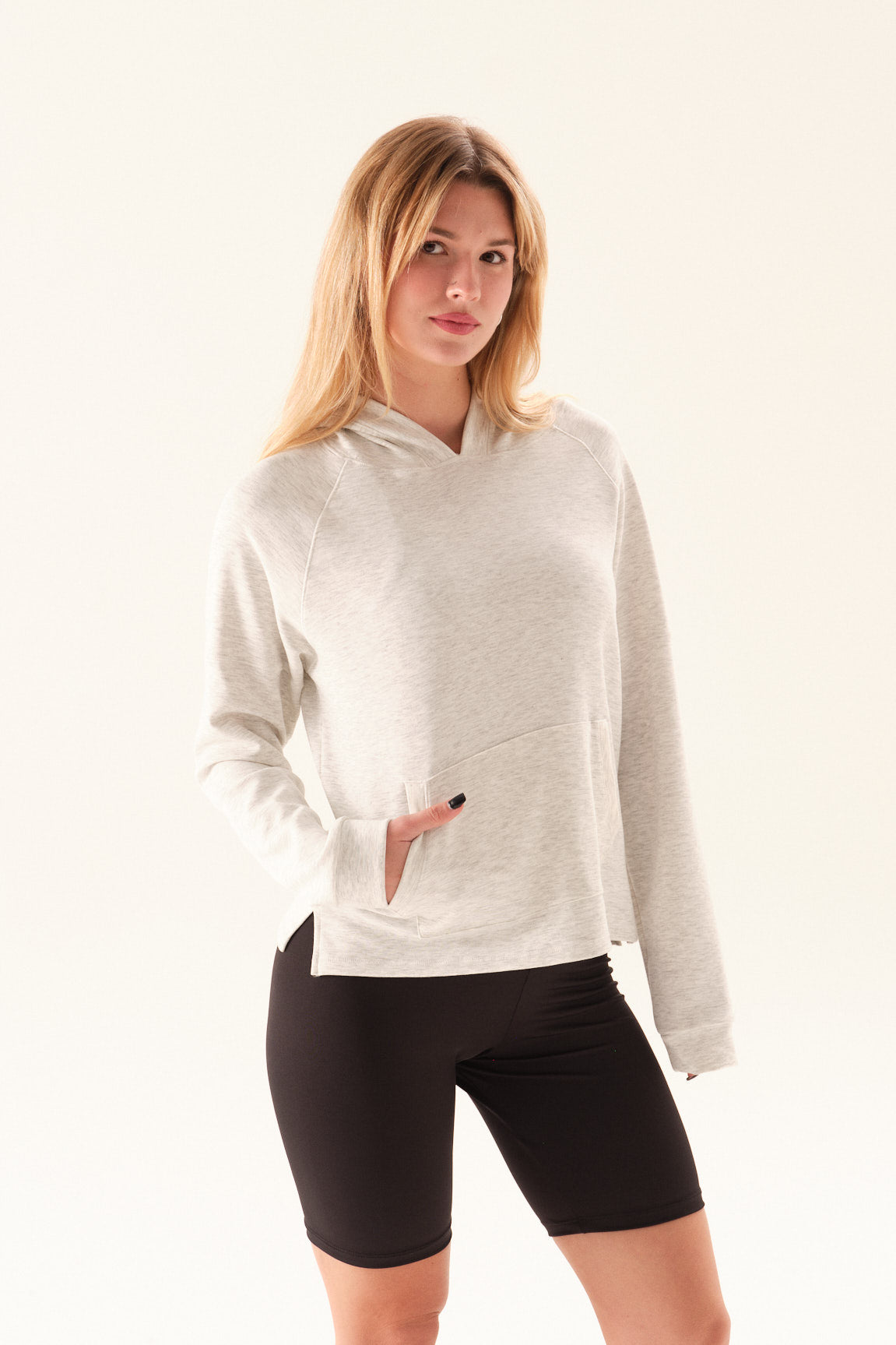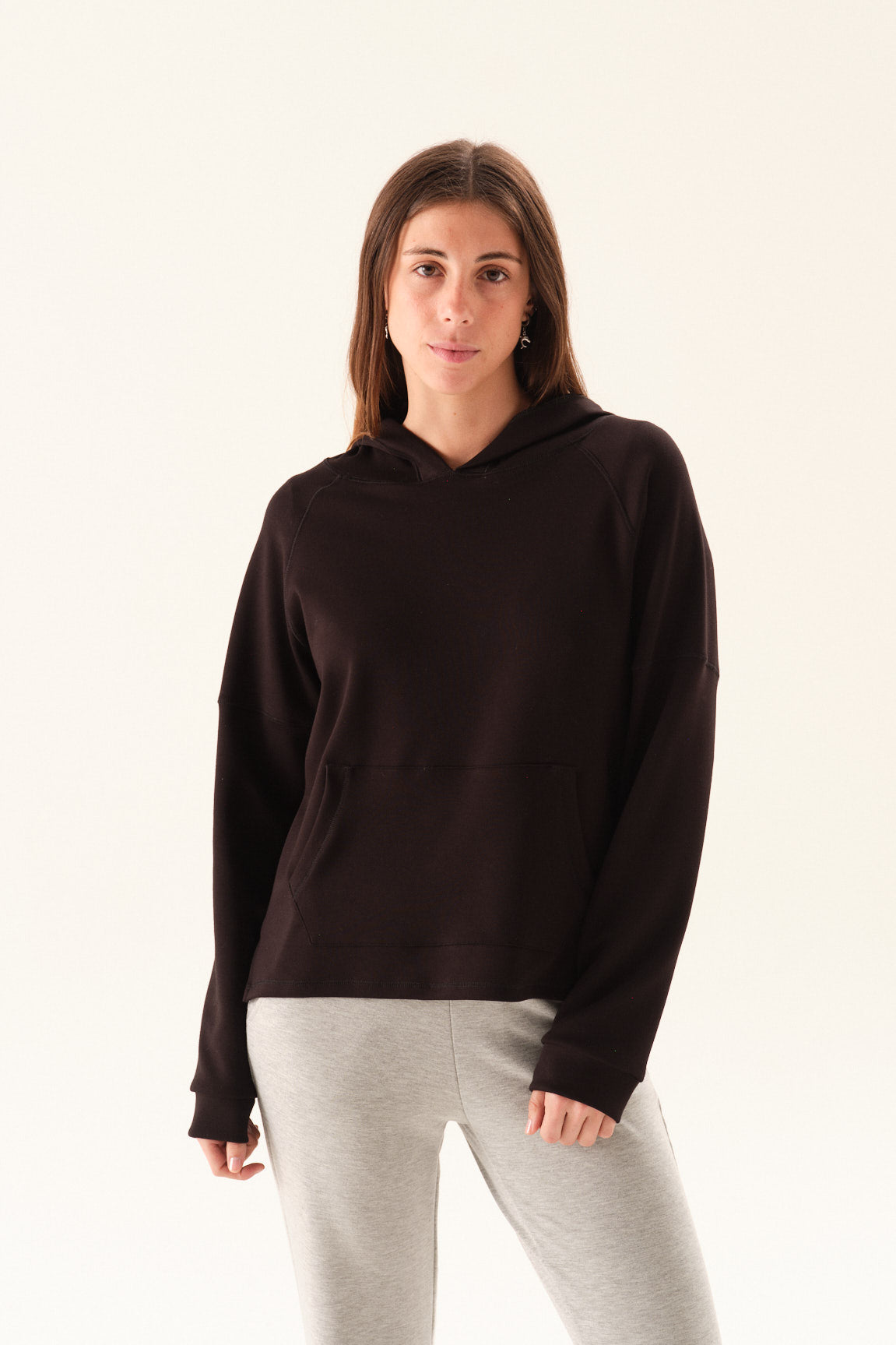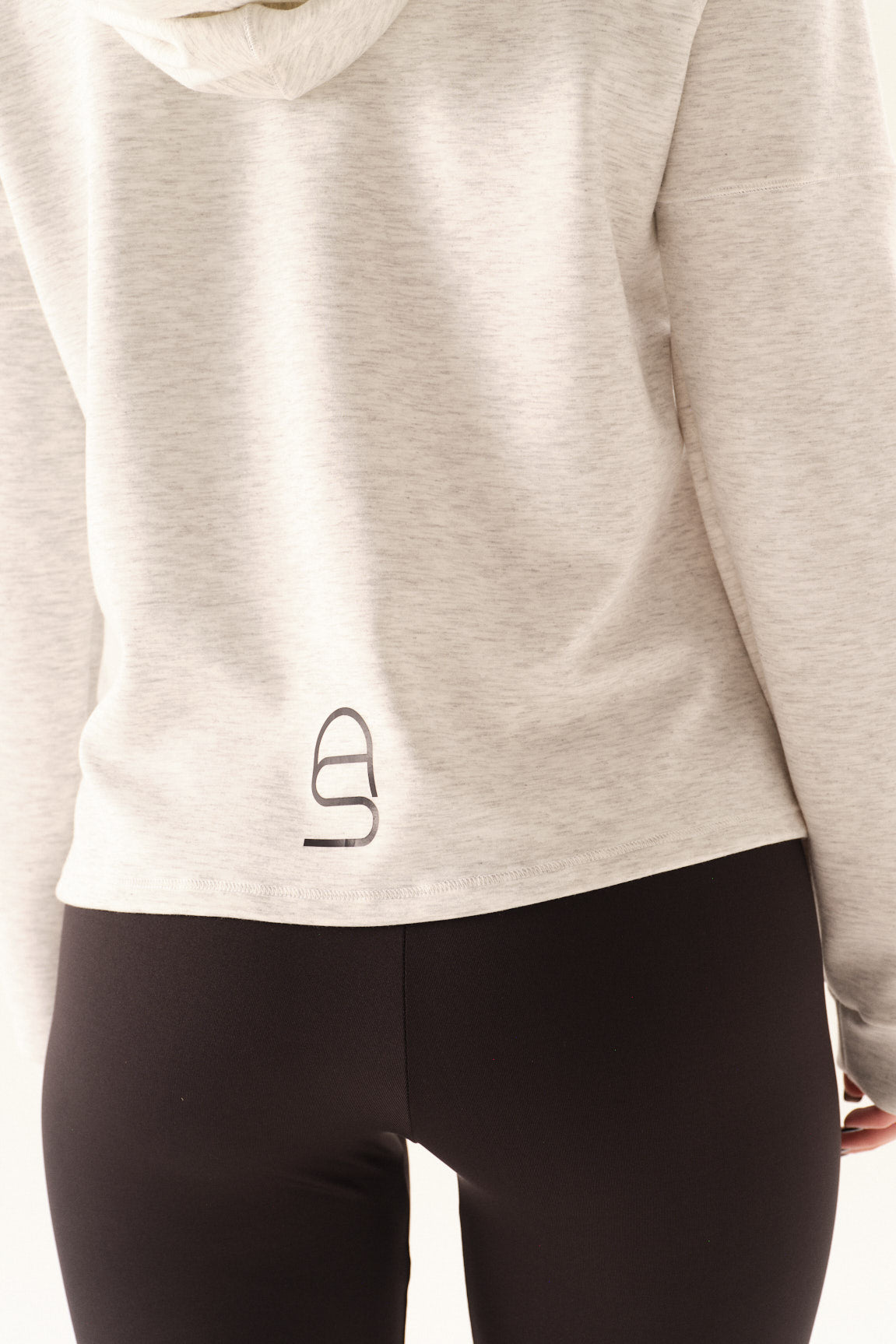 Buzo de rústico bondeado manga larga escote redondo. Tiene manga caída y costuras en bordador. Posee imagen de marca estampada en la espalda