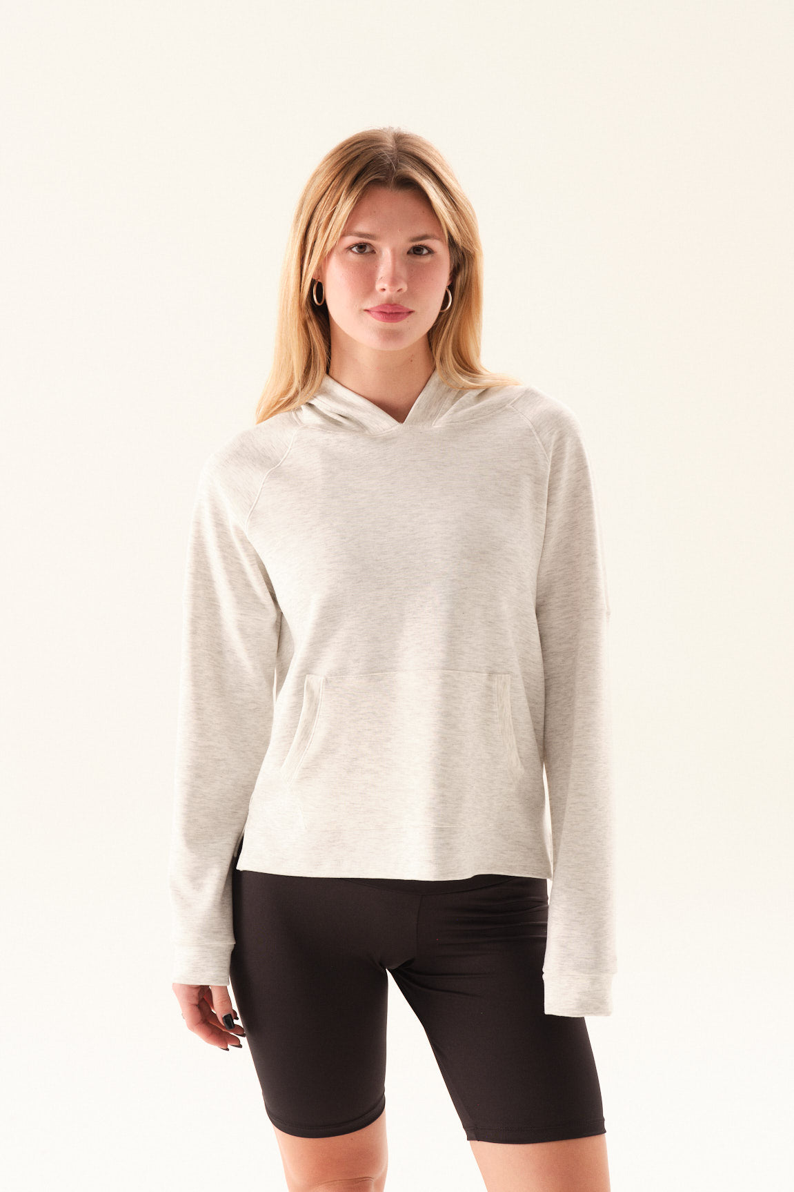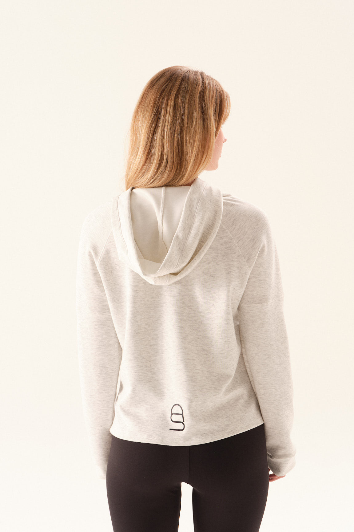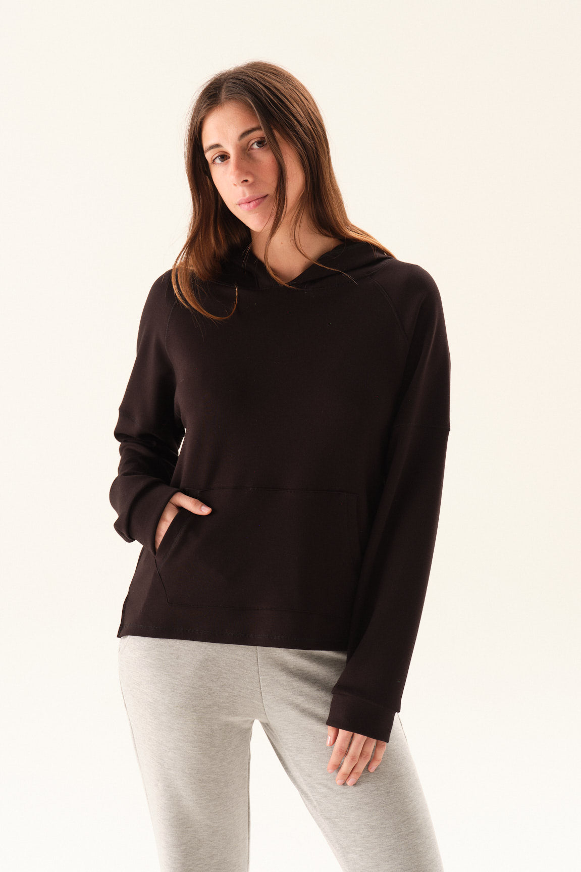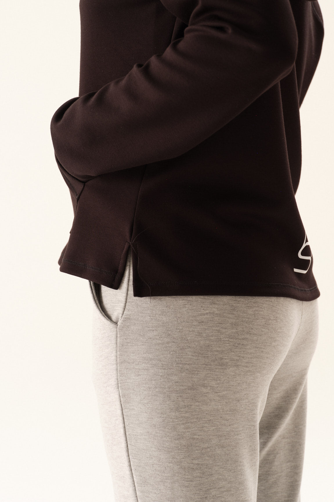 Buzo de rústico bondeado manga larga escote redondo. Tiene manga caída y costuras en bordador. Posee imagen de marca estampada en la espalda