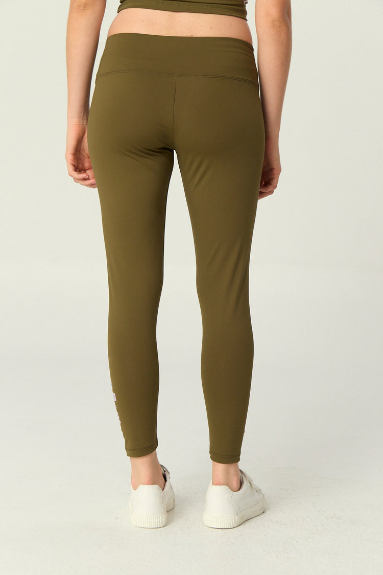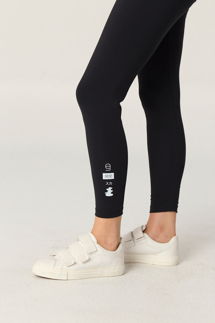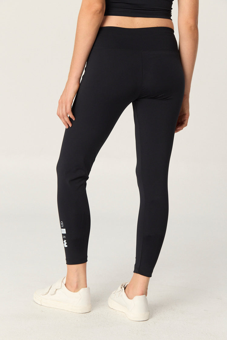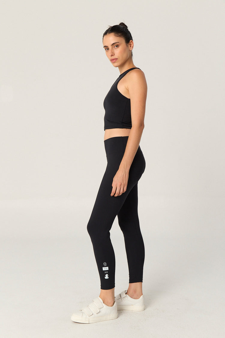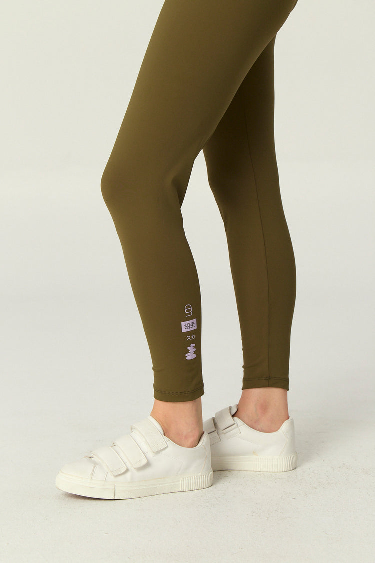 Calza de elastano con cintura ancha con elástico y estampa en pierna.