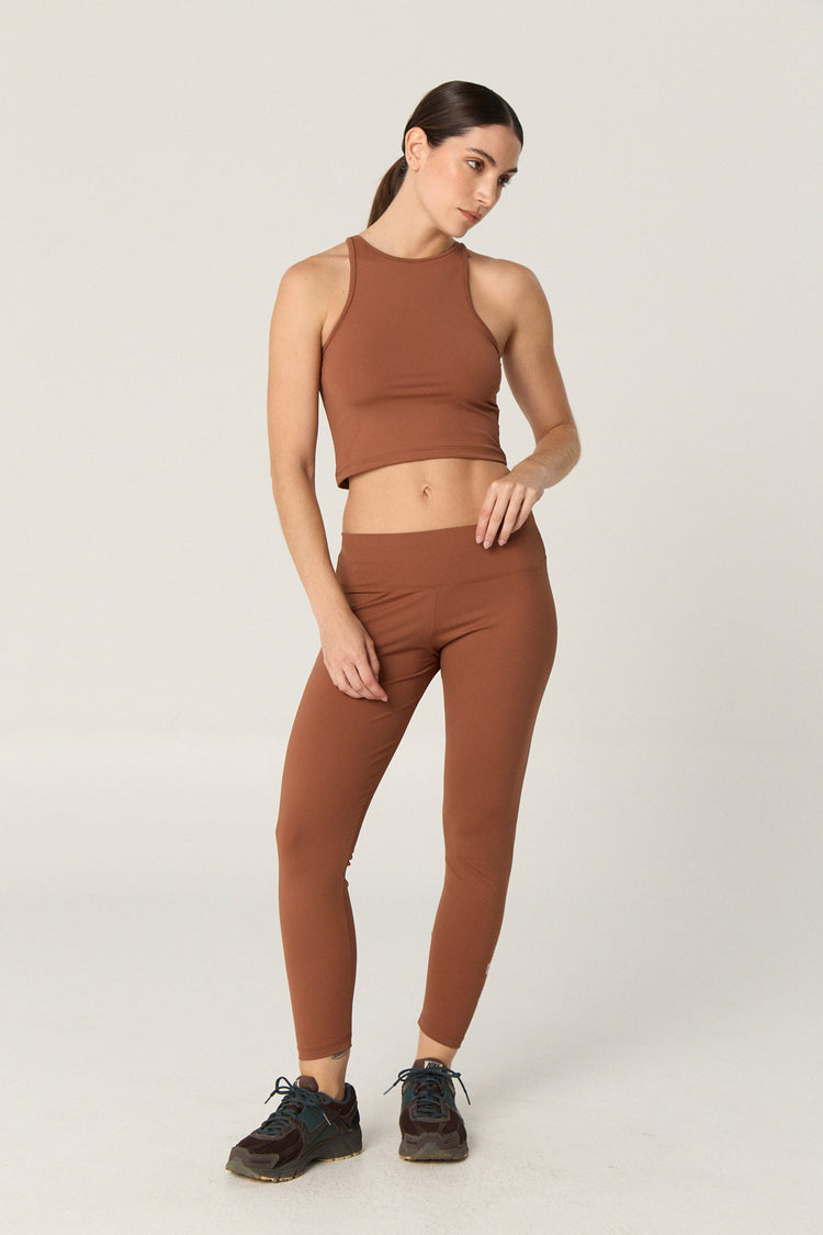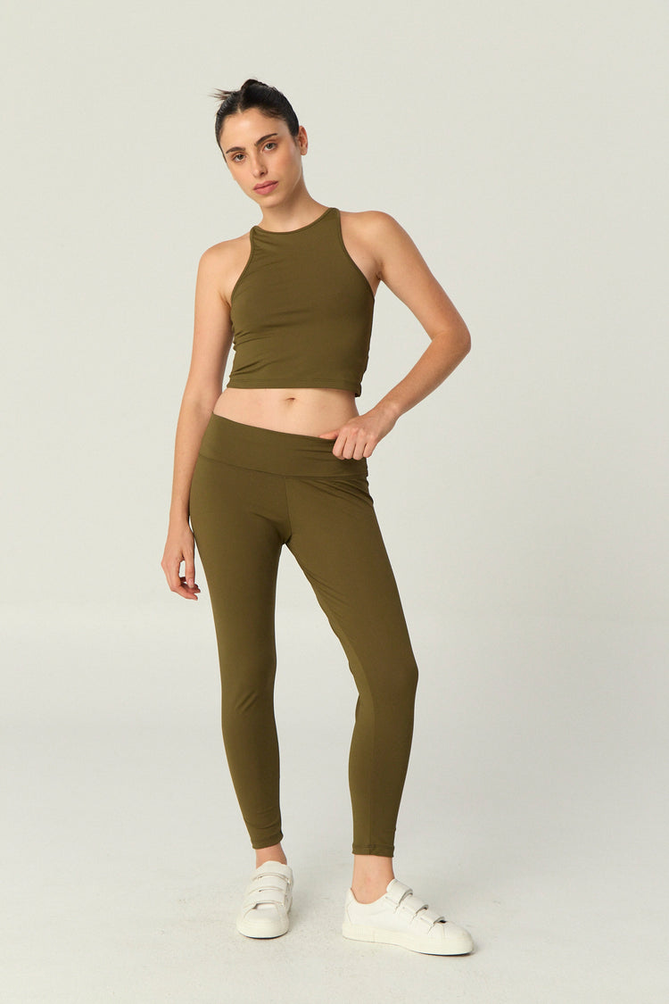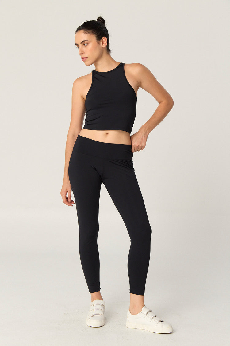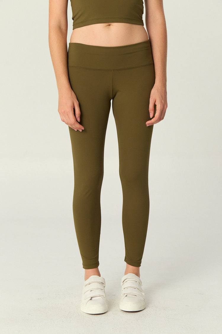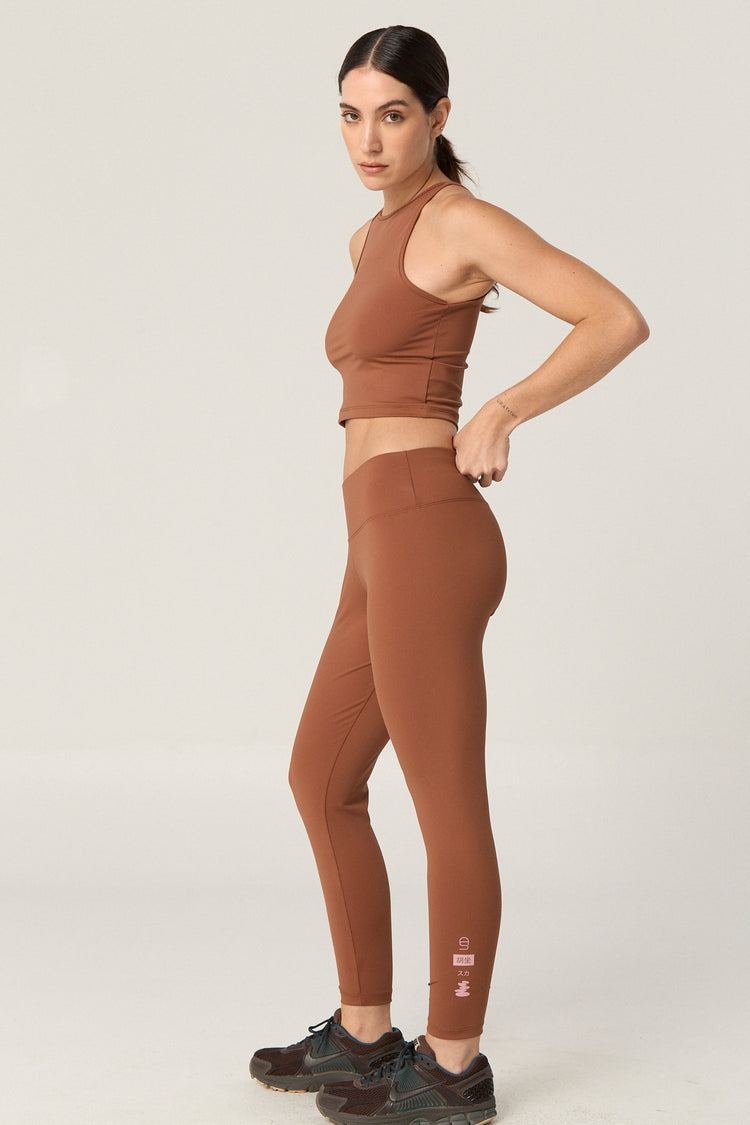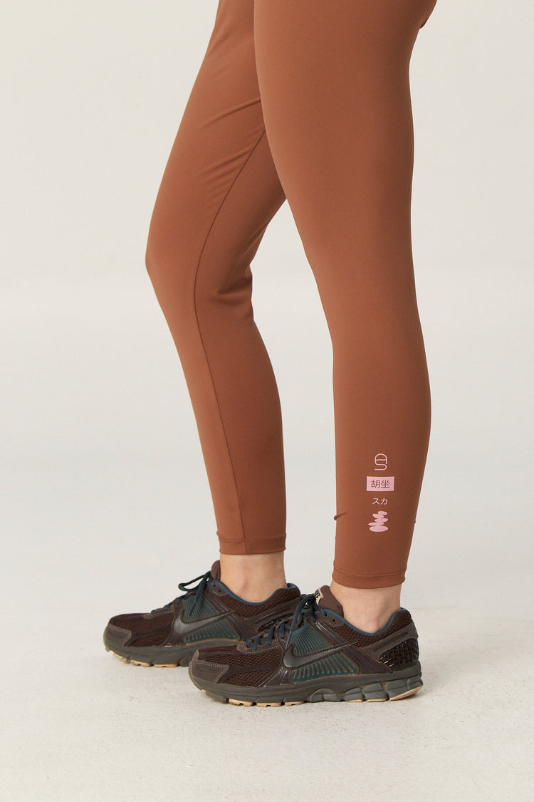 Calza de elastano con cintura ancha con elástico y estampa en pierna.