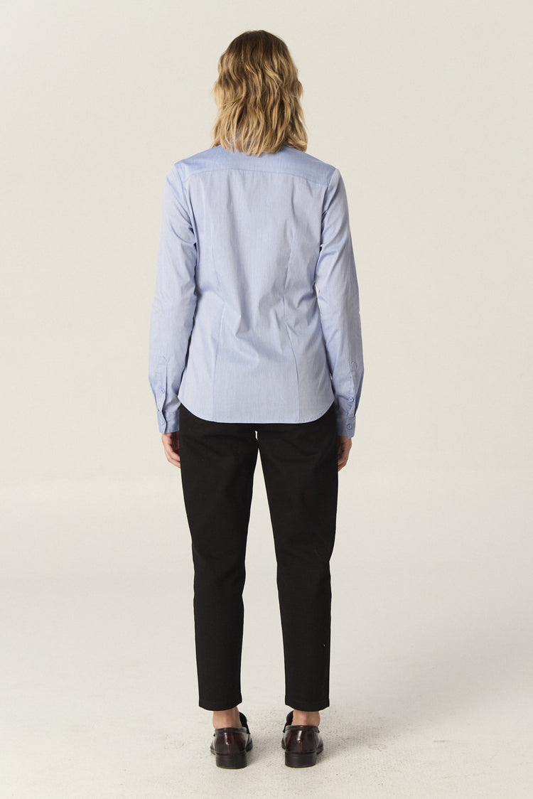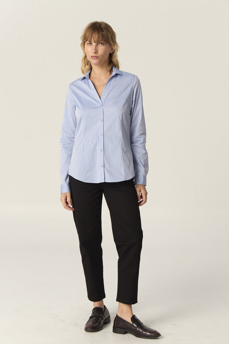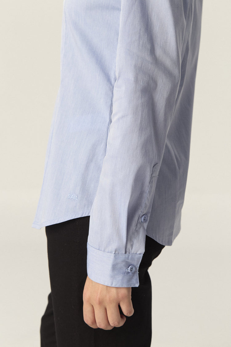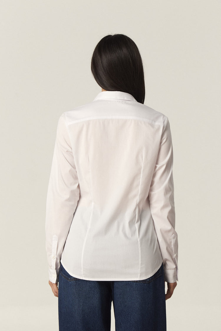 Camisa clásica y entallada con un ajuste cómodo. Confeccionada en poplín con elastano, su diseño entallado y de manga larga se adapta a la silueta, brindando un look prolijo y versátil.