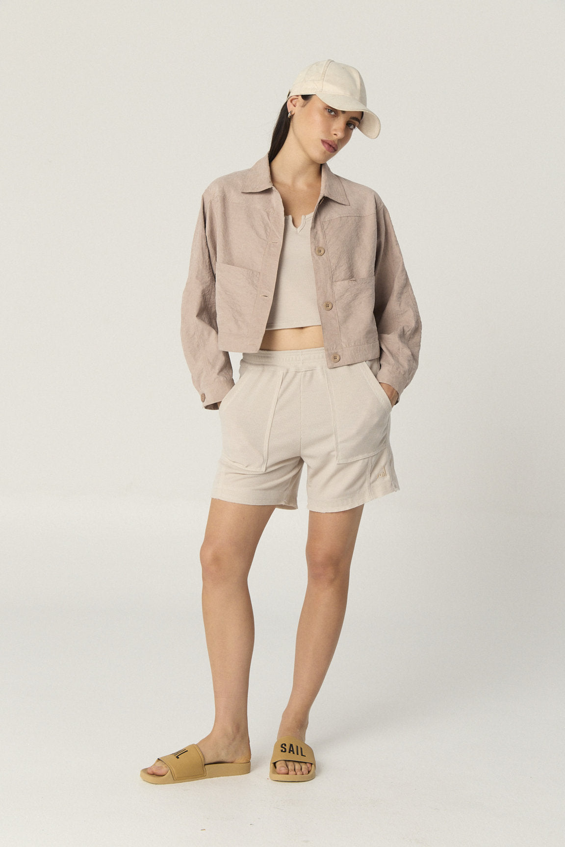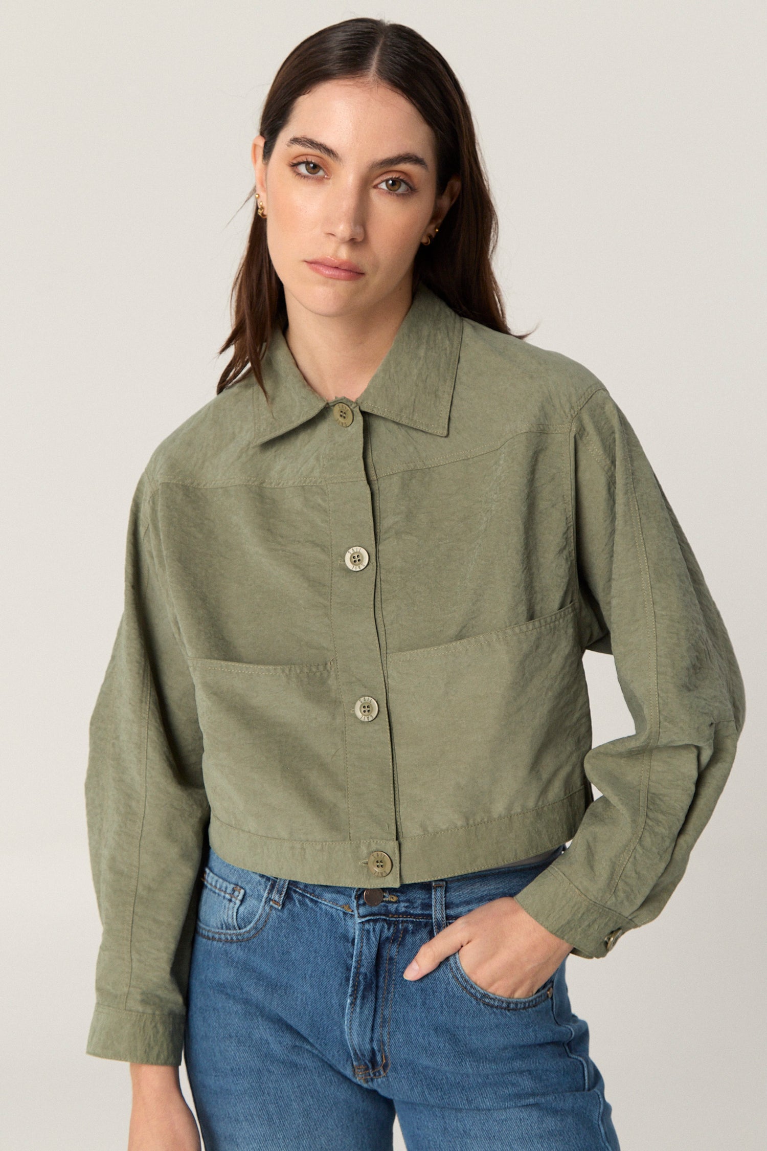 Chaqueta corta con bolsillos grandes con mangas murciélago