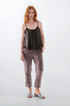 Pantalón sastrero de noche, con brillo, tobillero. Lleva elástico en cintura.