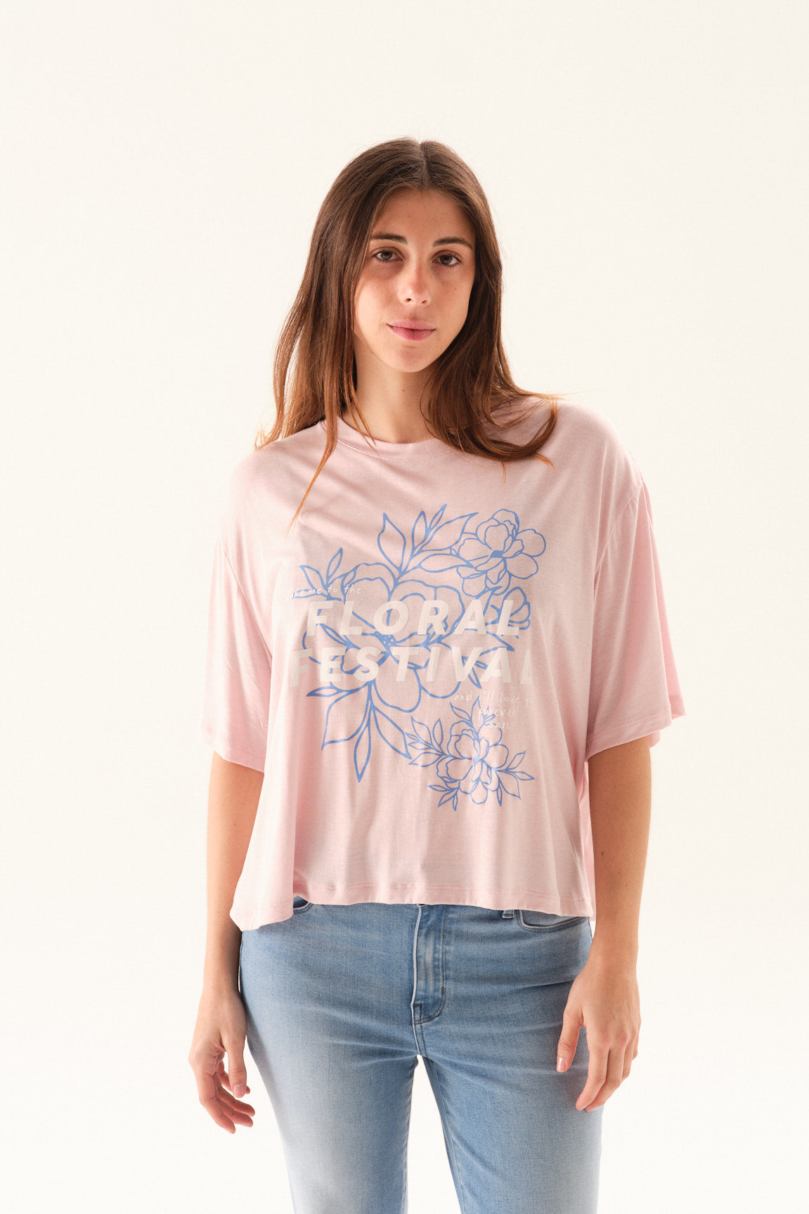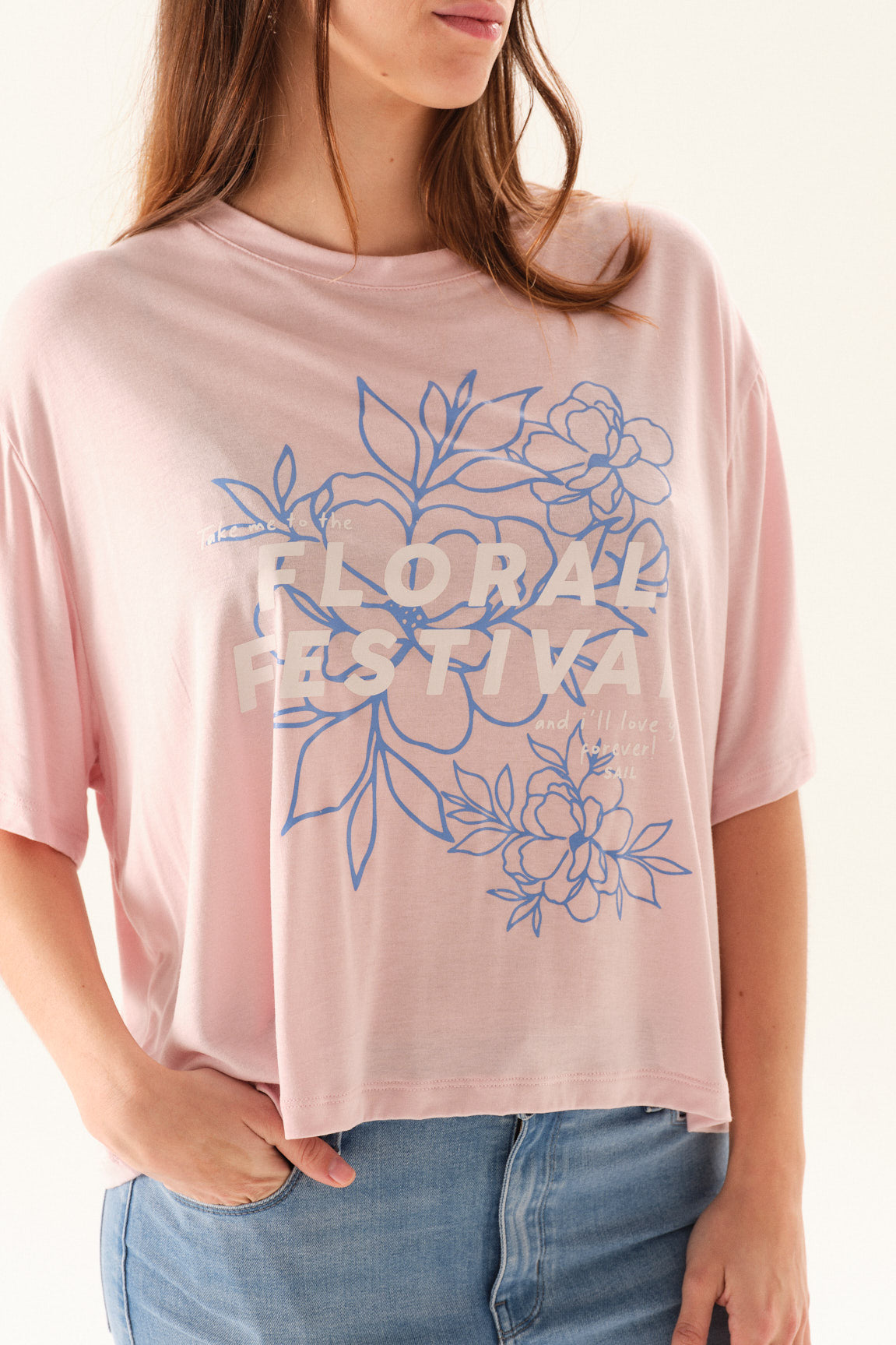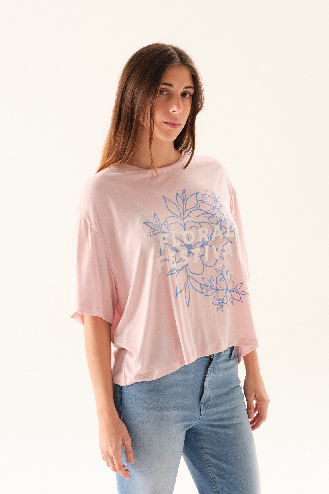Remera de viscosa flame oversize manga corta con escote redondo con estampa en el delantero.