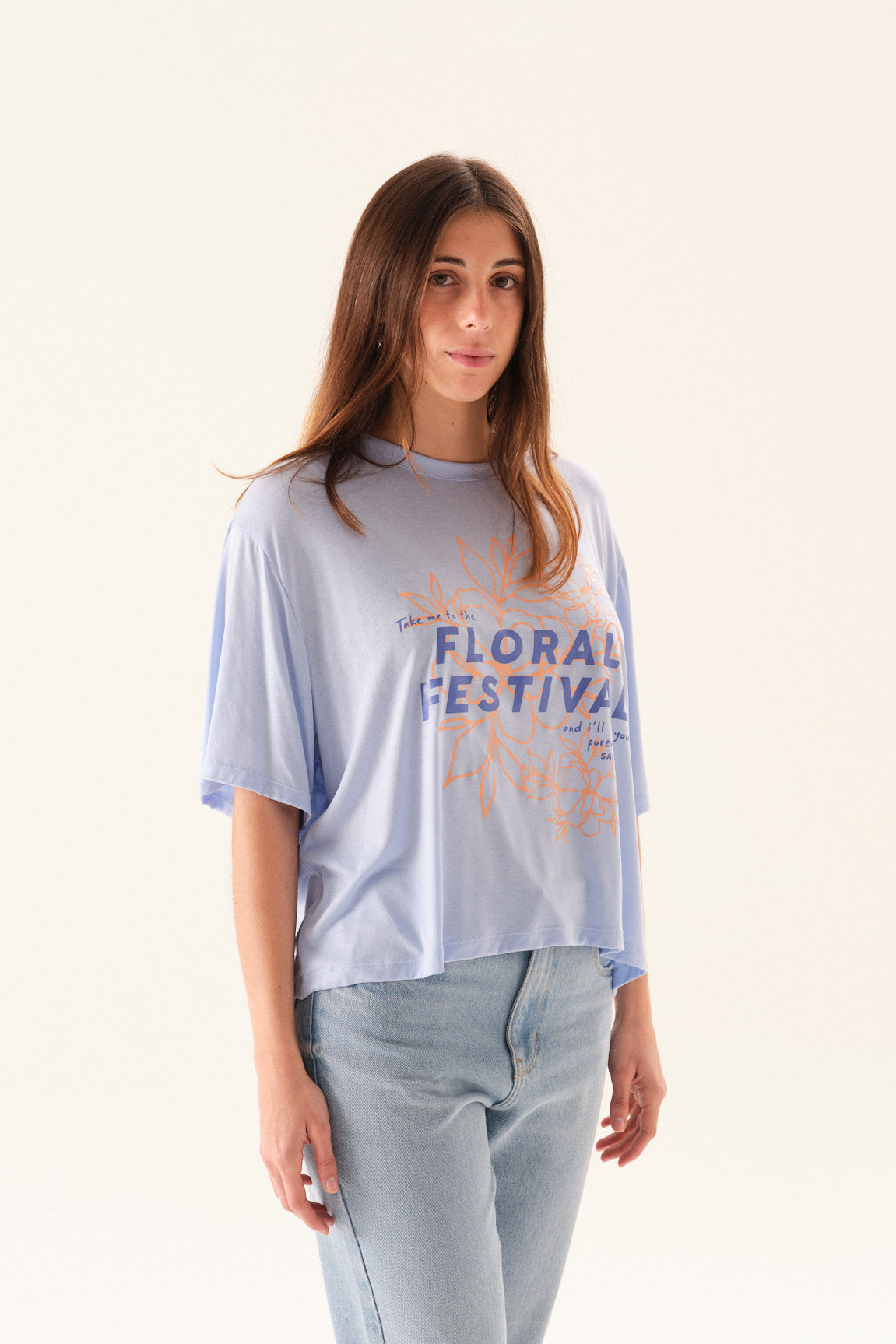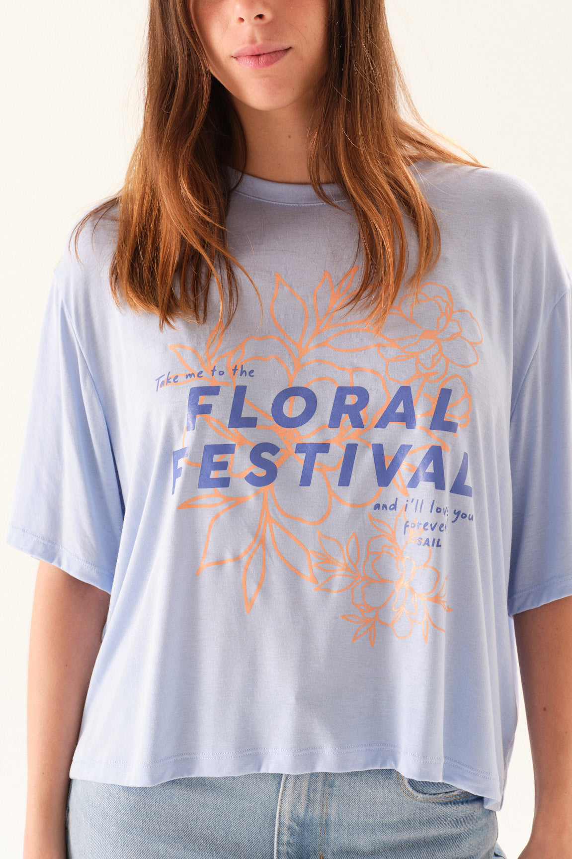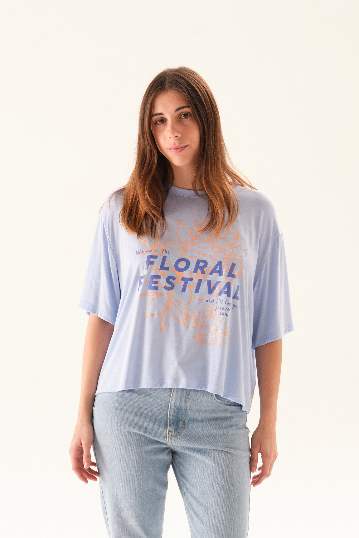 Remera de viscosa flame oversize manga corta con escote redondo con estampa en el delantero.