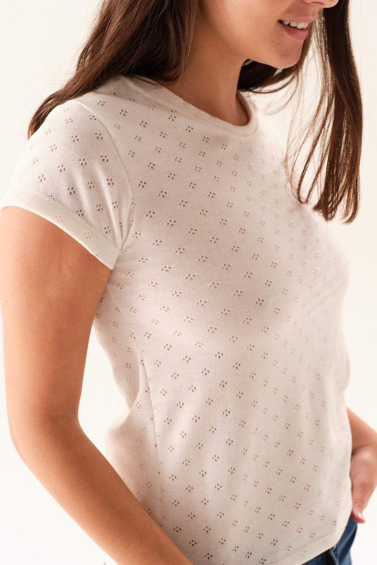 Remera de jersey desagujado con escote redondo y manga corta.