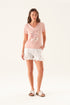 Short de sedita tiro alto con elástico en la espalda y volados en el ruedo.